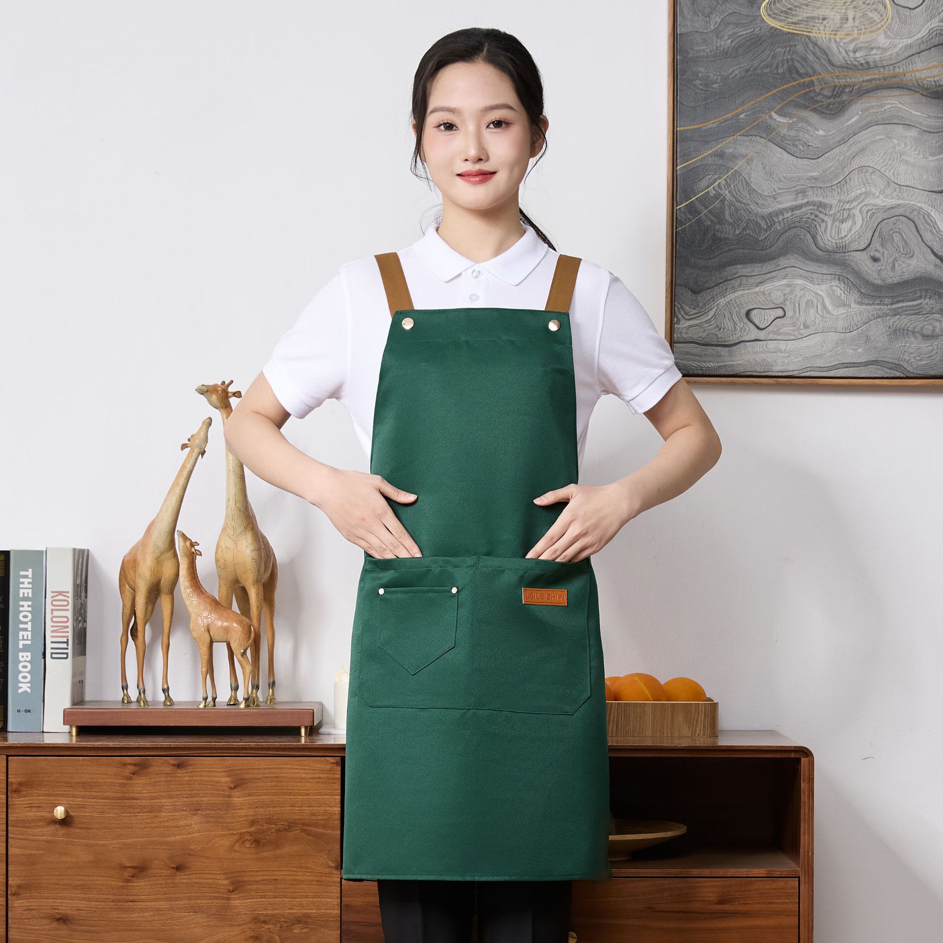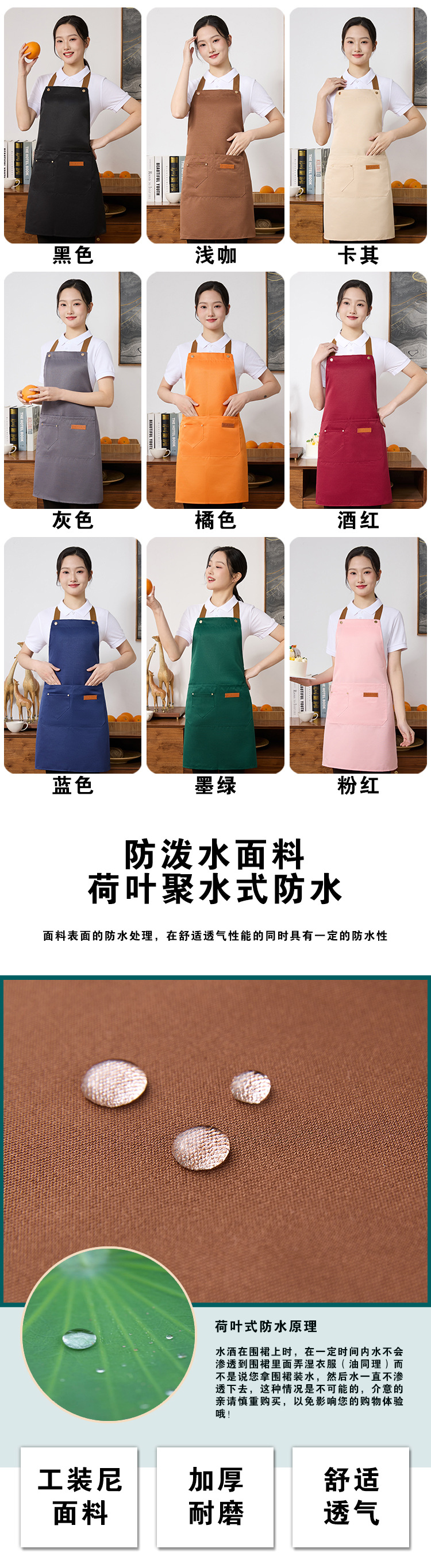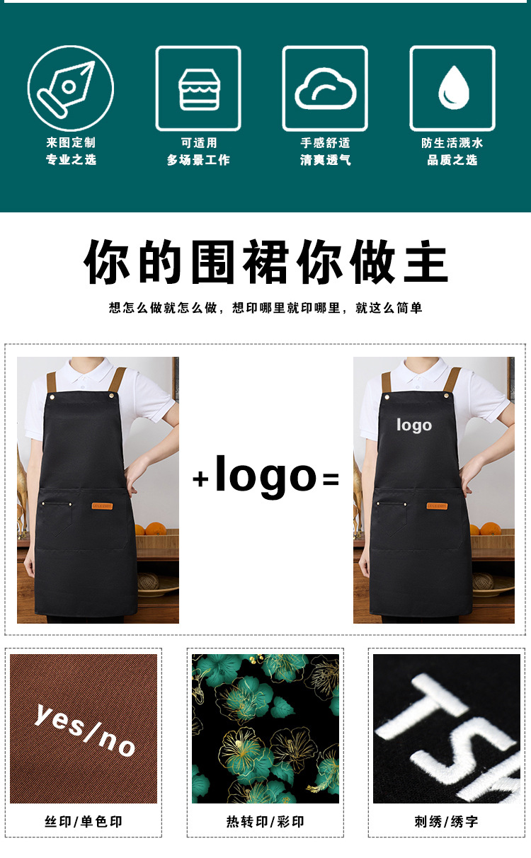 앞치마 발수 직물 통기성 주방 가구 인쇄 로고 자수 케이터링 매점 4 계절 여성 작업 앞치마