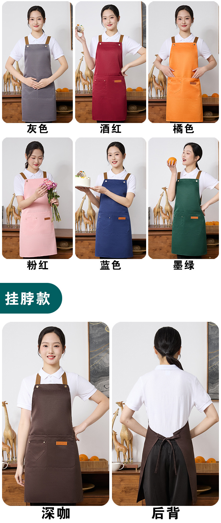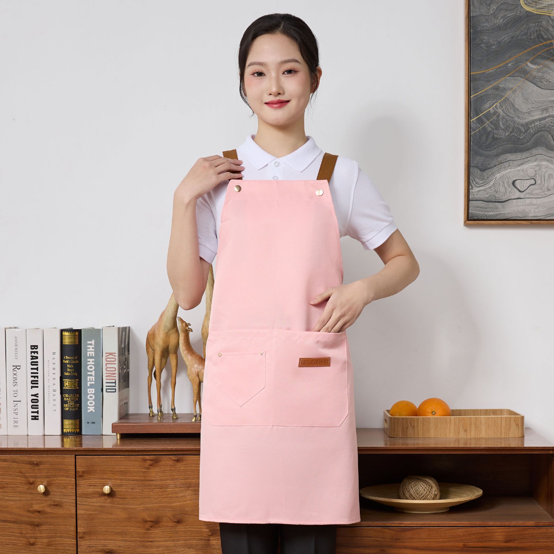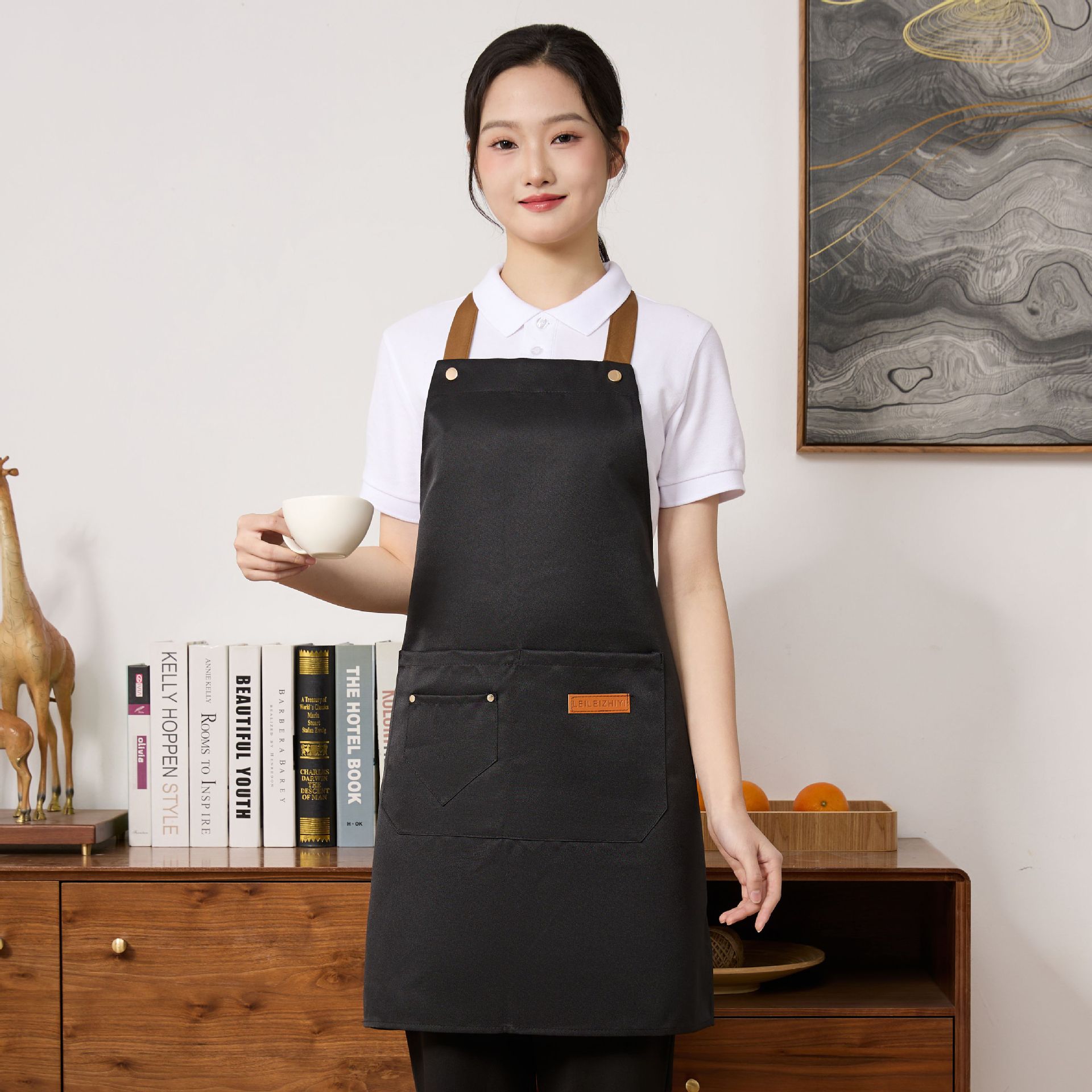 앞치마 발수 직물 통기성 주방 가구 인쇄 로고 자수 케이터링 매점 4 계절 여성 작업 앞치마