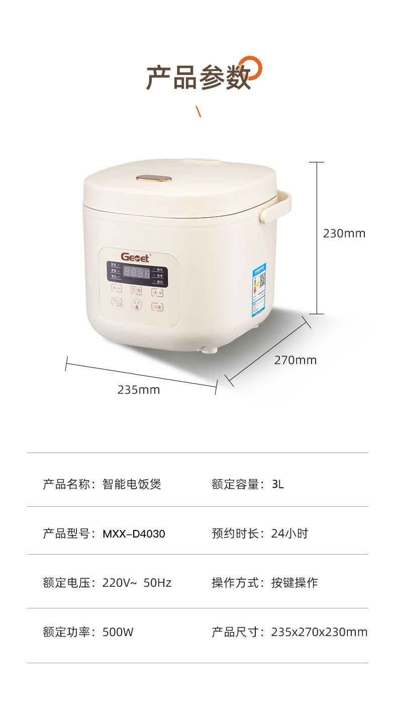 독일/Gemet 쌀밥솥 3L 홈 스마트 예약 작은 요리 쌀 수프 3-4 인용 스틱 밥솥