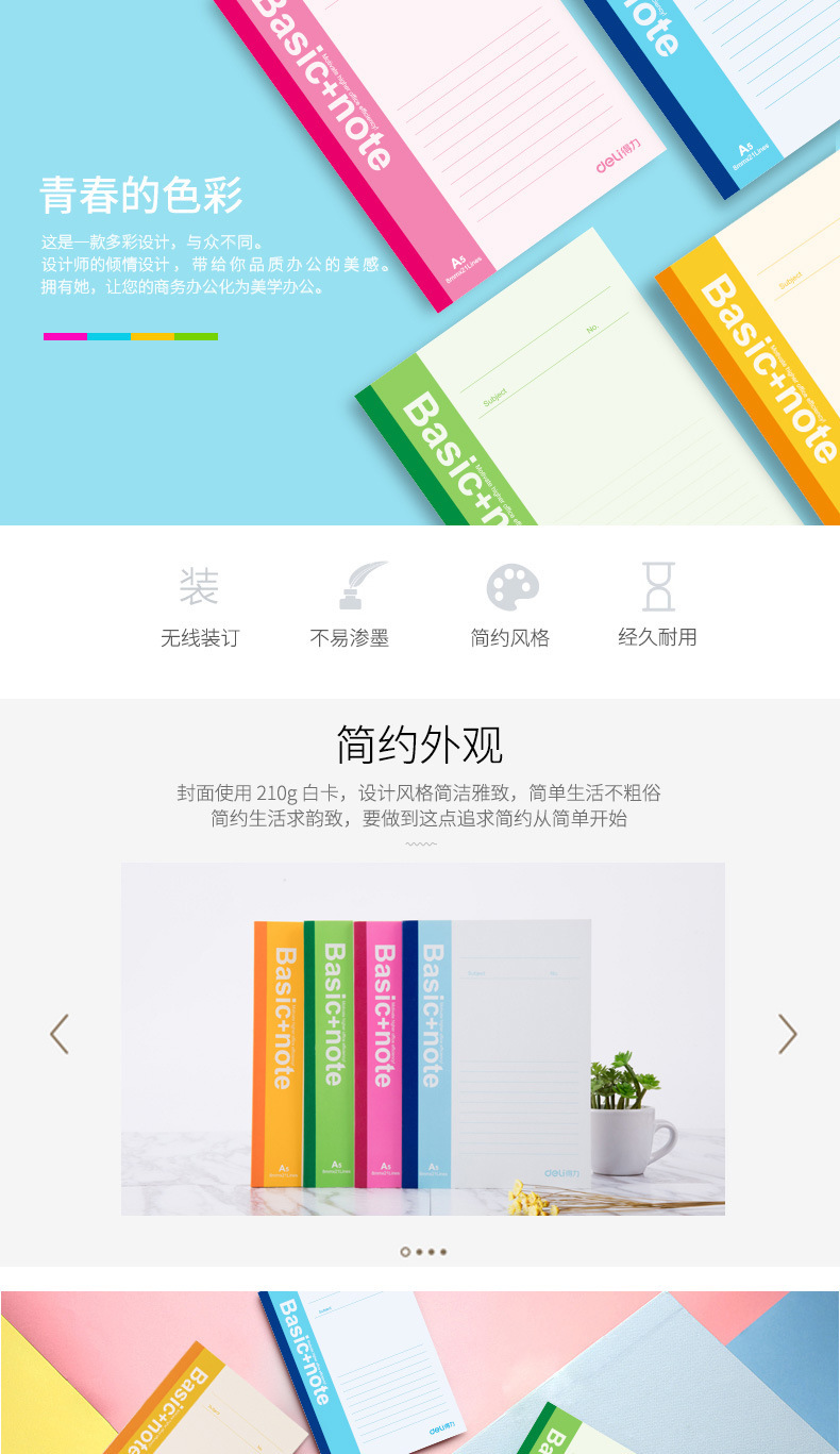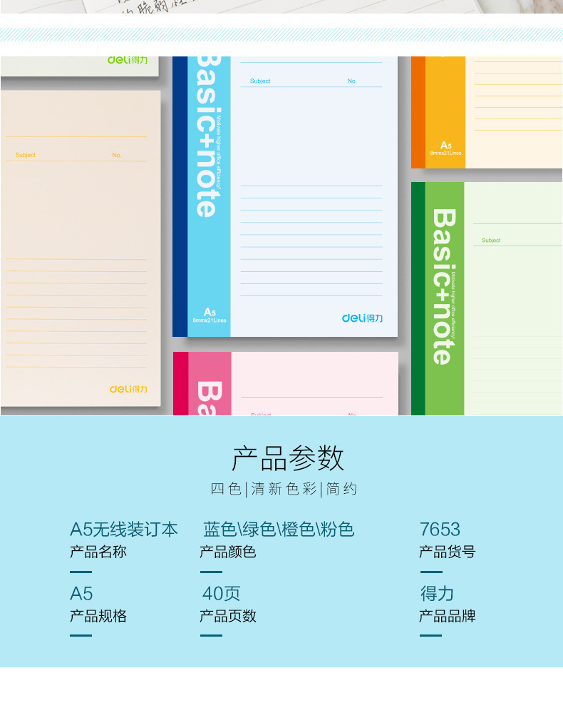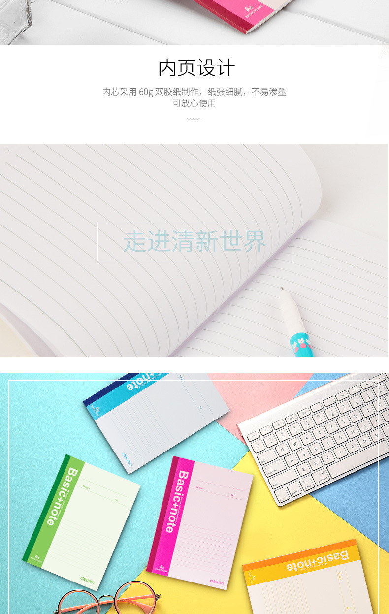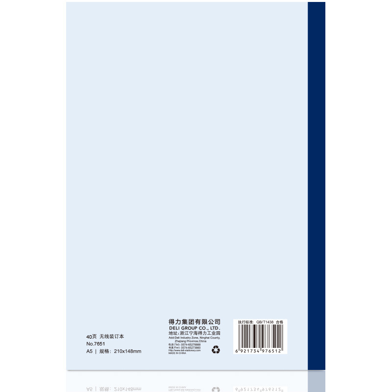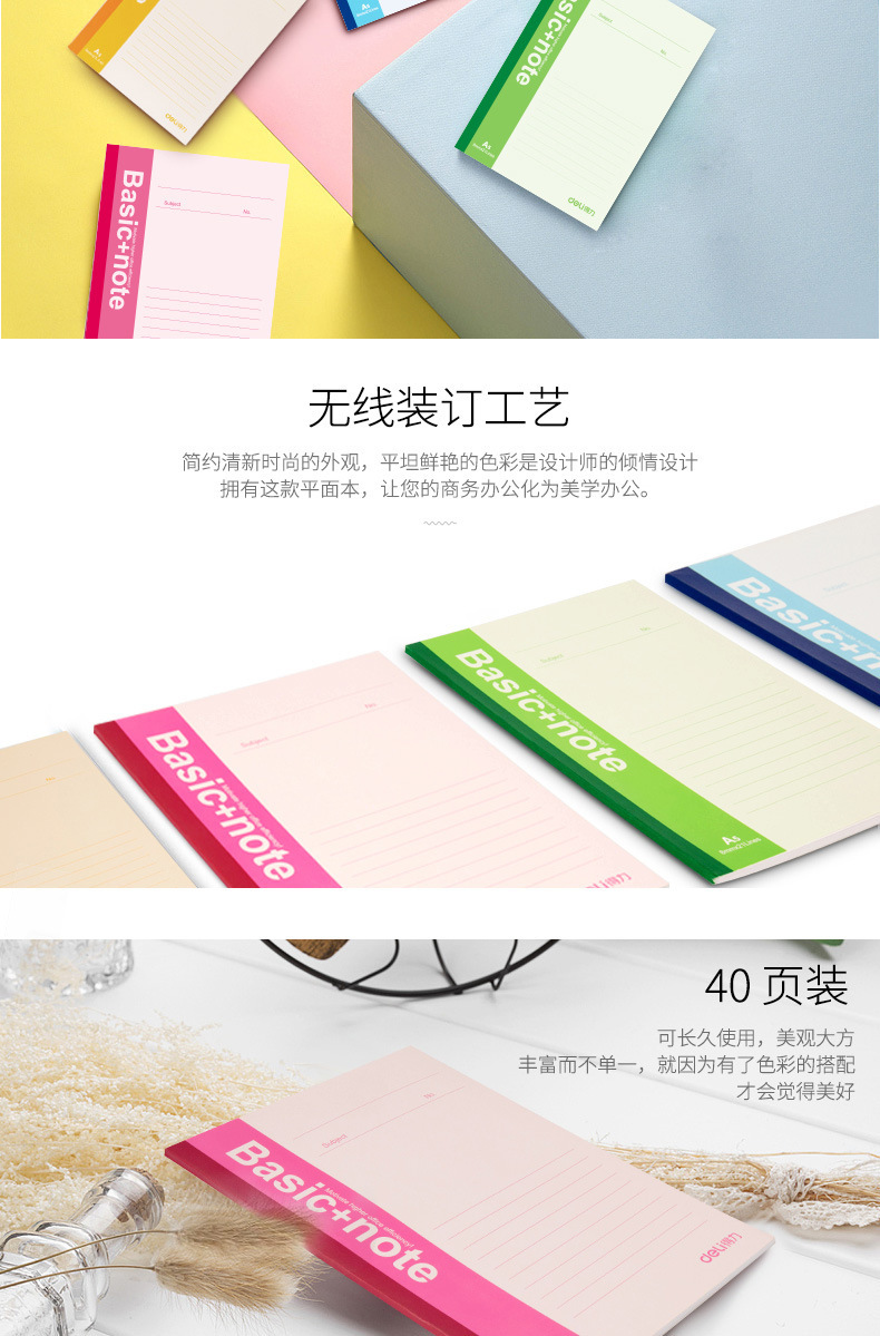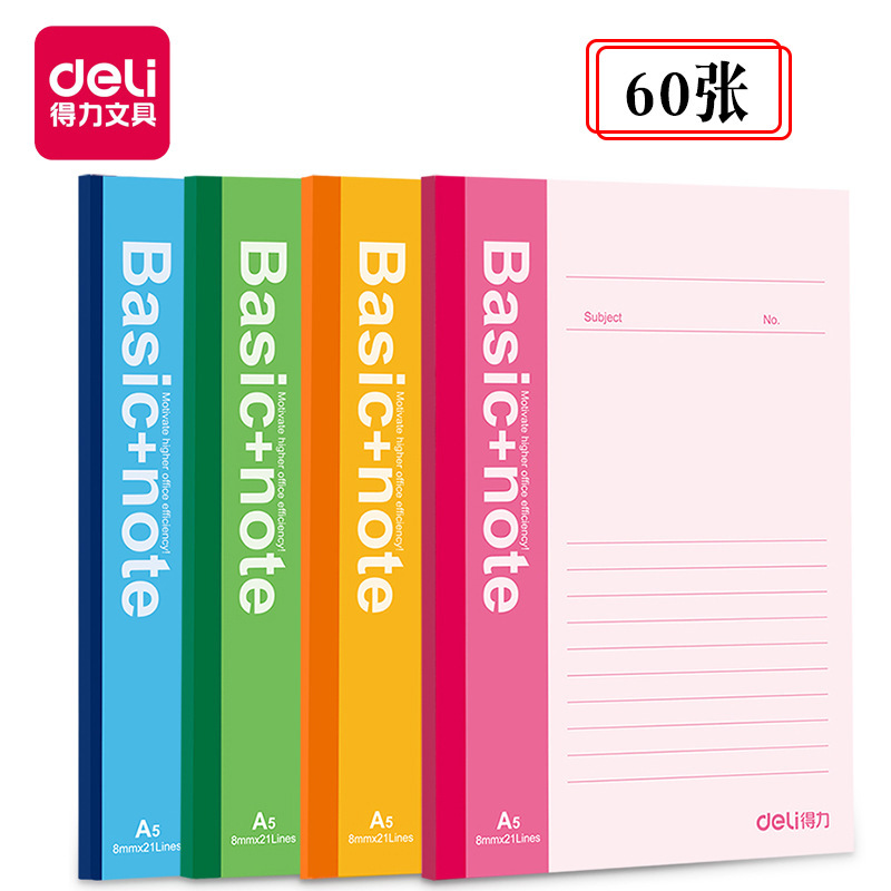 델리 7653 노트 60페이지 A5 소프트커버 비즈니스 사무용 회의 노트 학생용 문구 다이어리