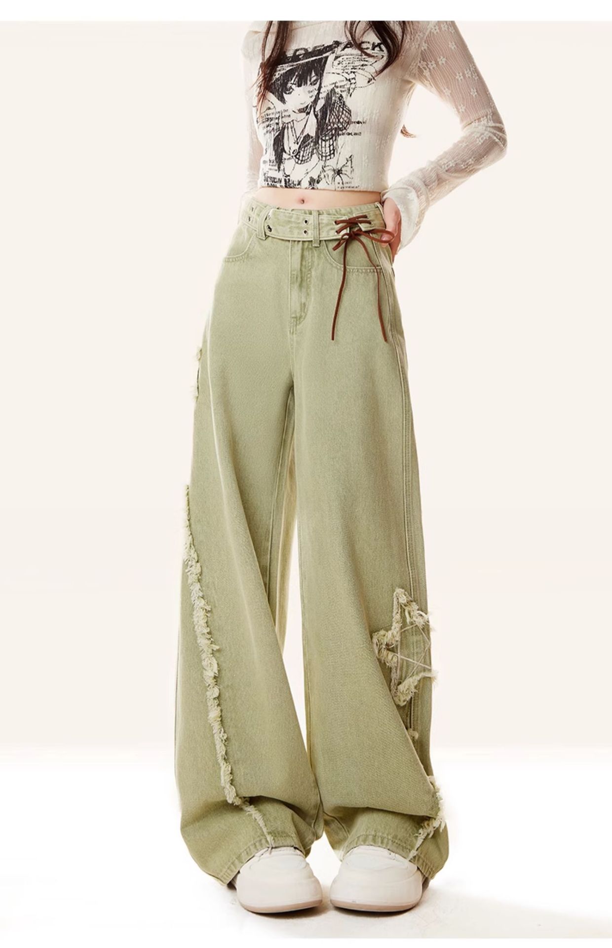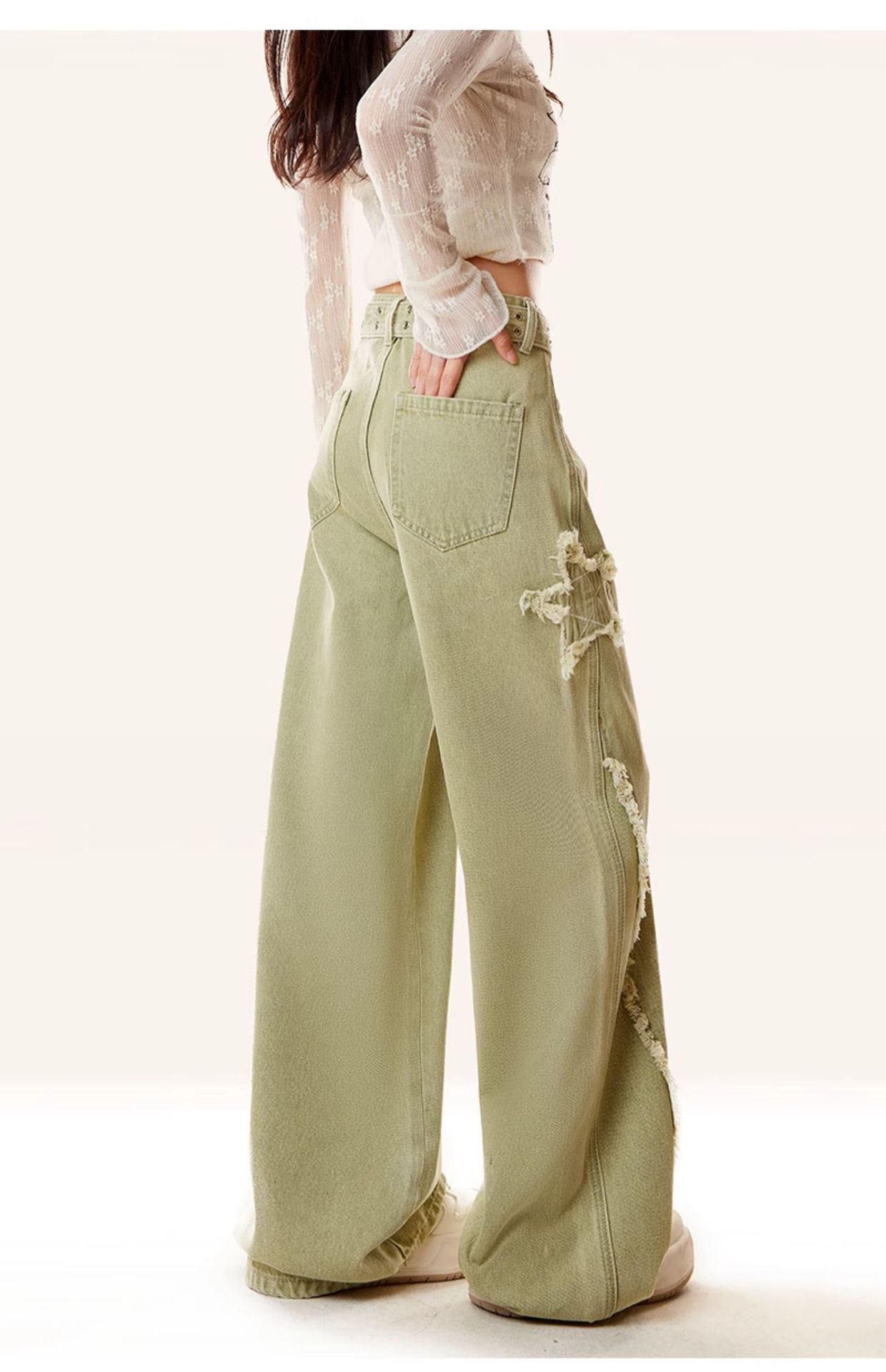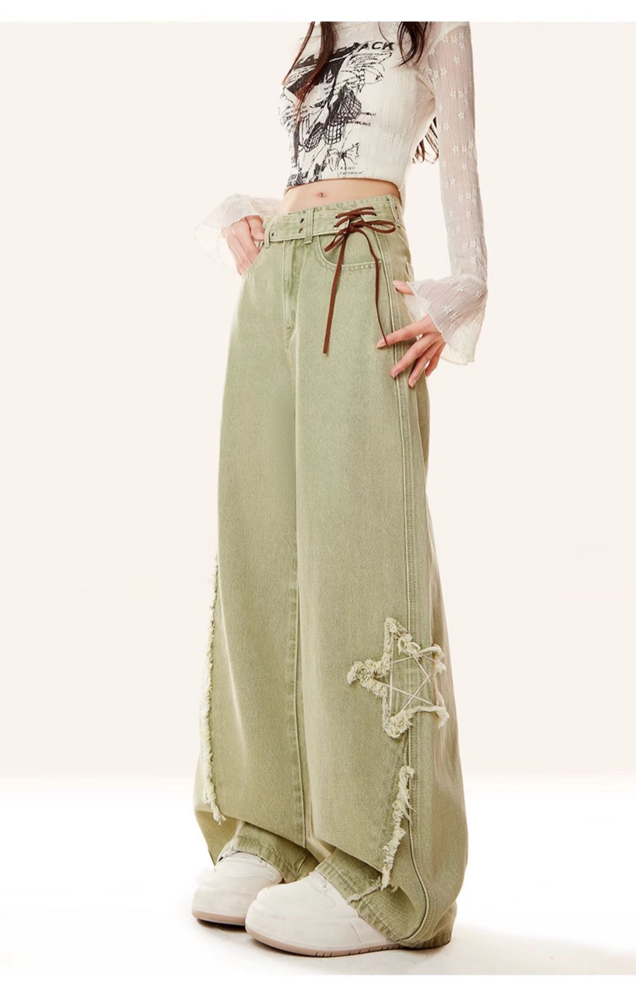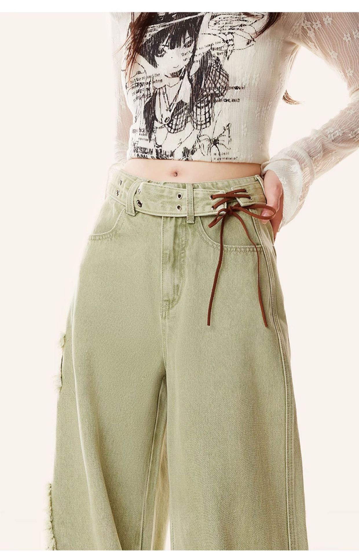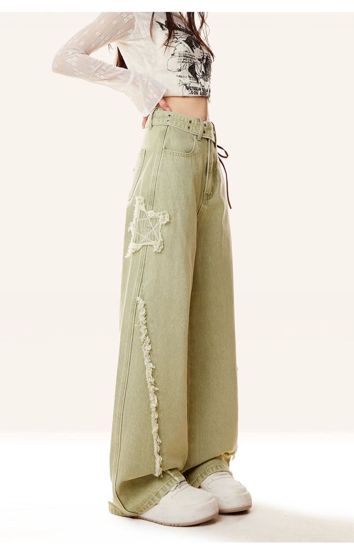 자연 풍성 아메리칸 레트로 향수 넓은 다리 청바지 여성의 2025 봄 디자인 높은 허리 느슨한 걸레 바지