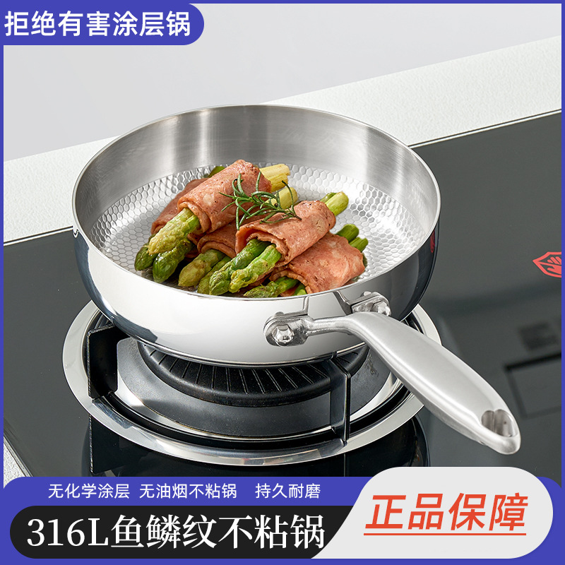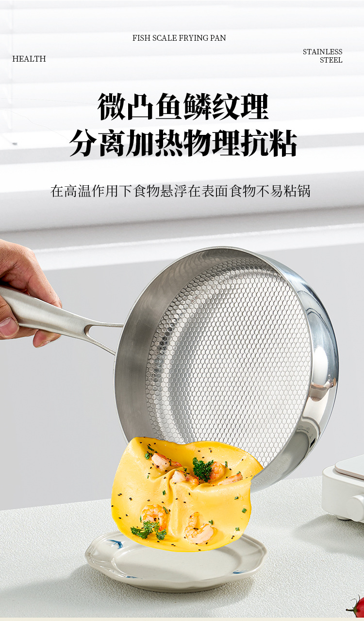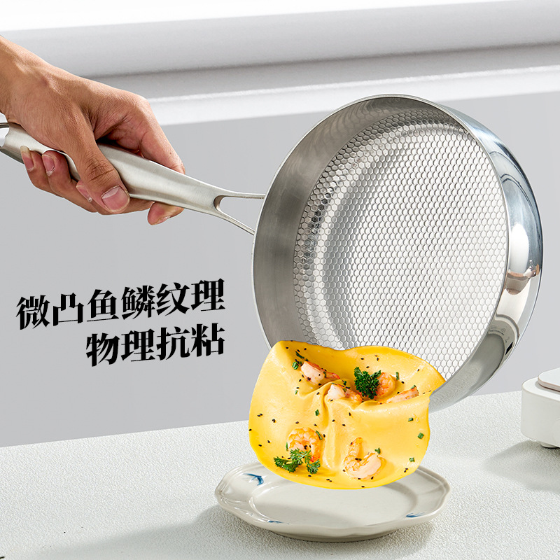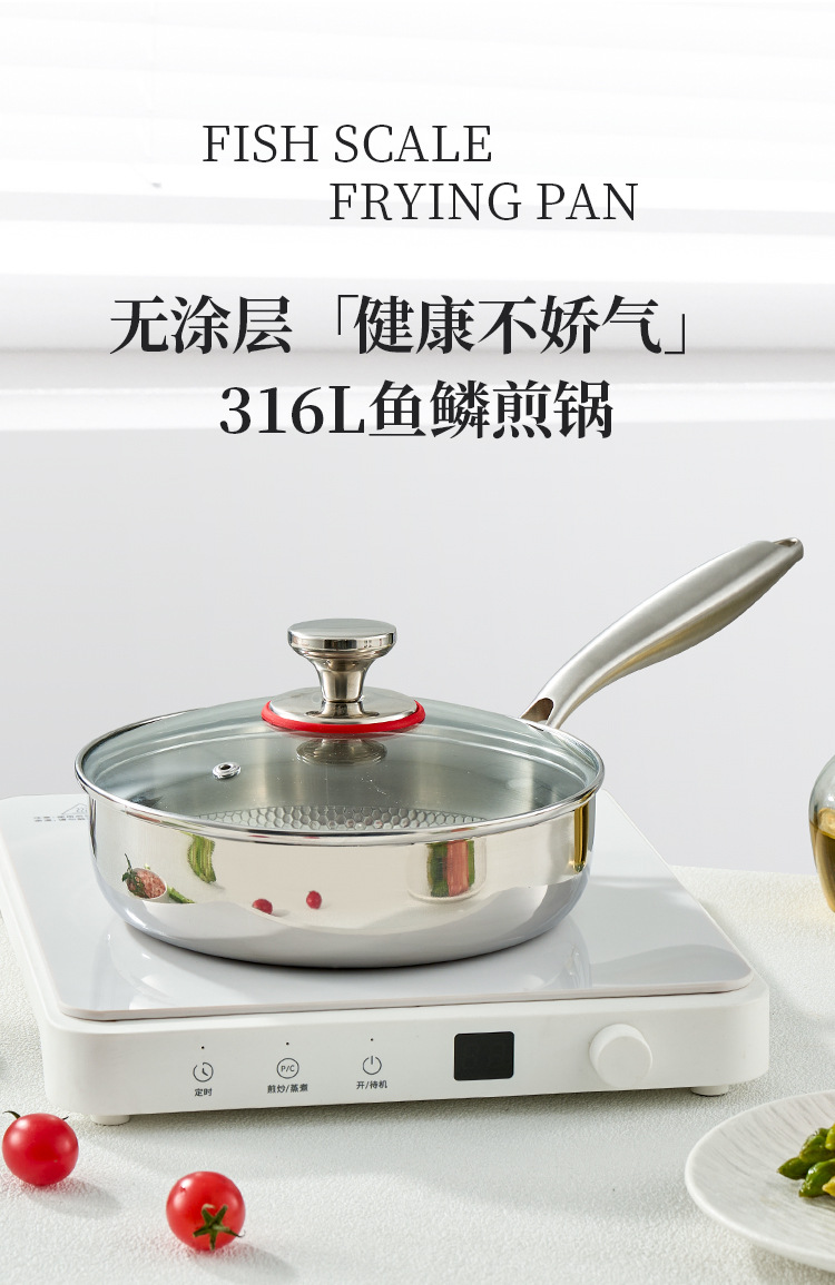 316 스테인레스 스틸 생선 스케일 패턴 다기능 비 스틱 팬 프라이팬과 끓는 무연 스틱 비 스틱 워크 0 코팅 물리적 안티 스틱