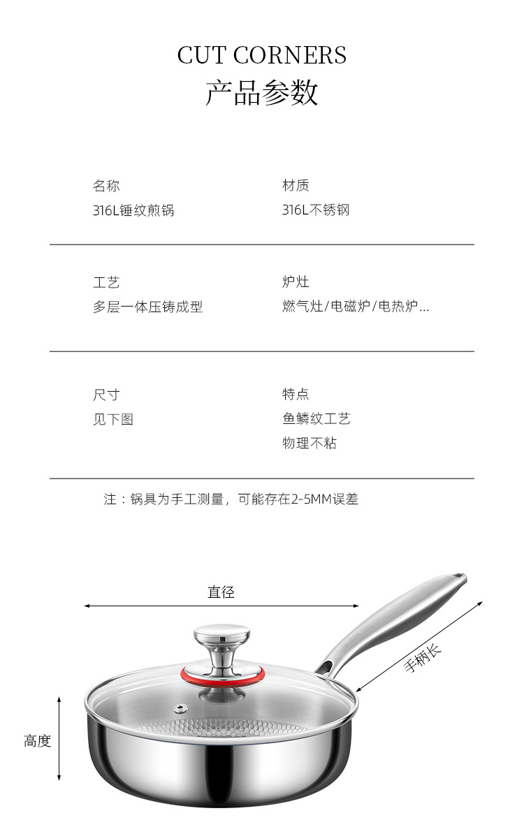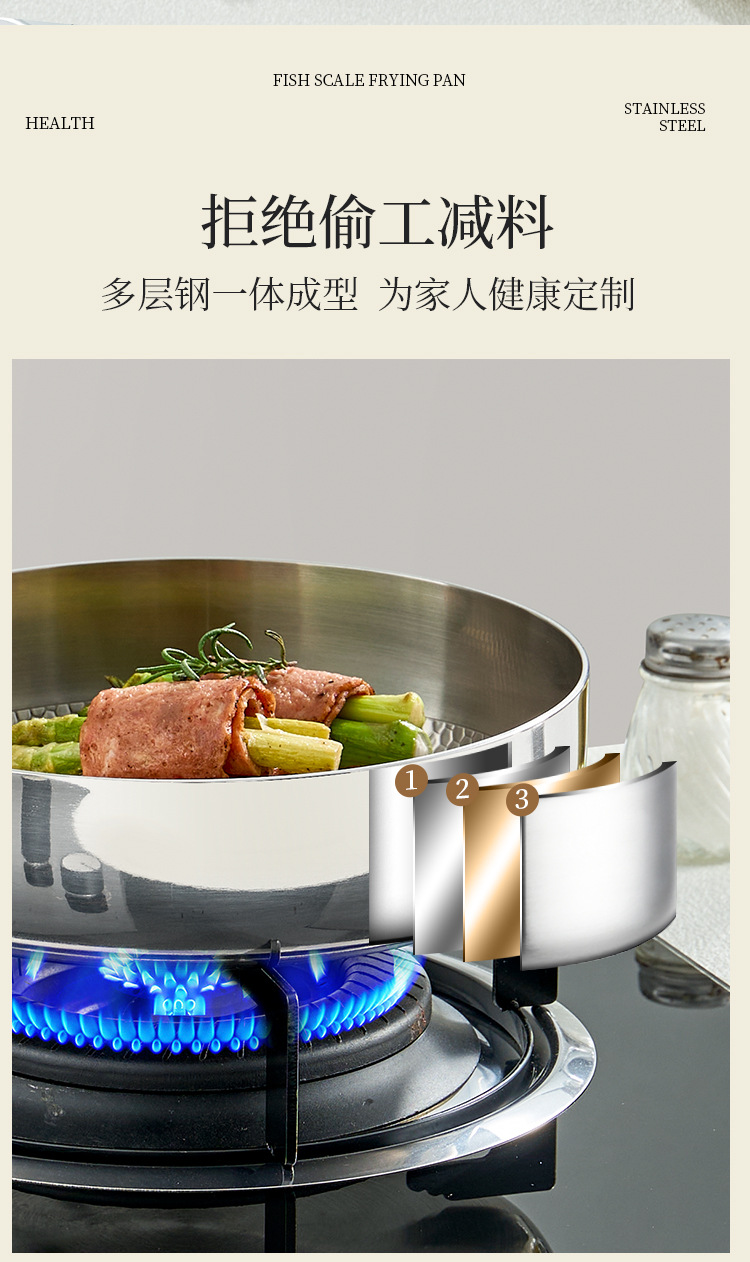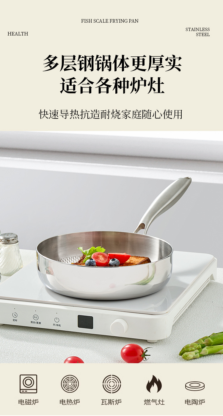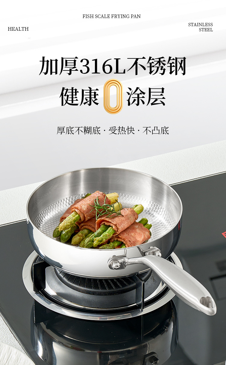 316 스테인레스 스틸 생선 스케일 패턴 다기능 비 스틱 팬 프라이팬과 끓는 무연 스틱 비 스틱 워크 0 코팅 물리적 안티 스틱