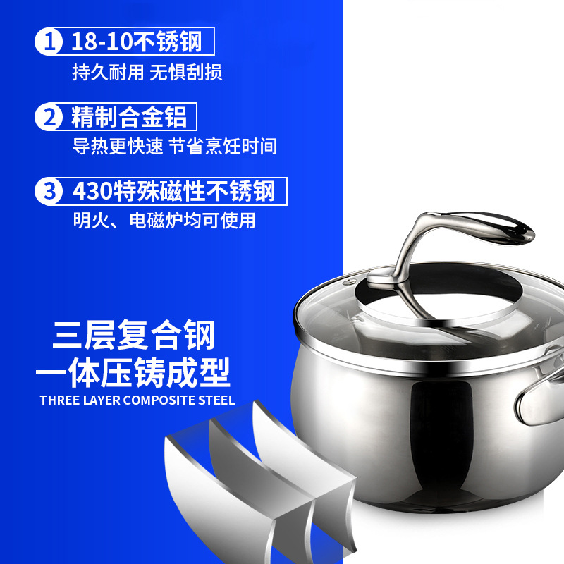 16cm-18cm 우유 냄비, 3중 스틸 우유 냄비, 아침식사 냄비, 이유식 냄비, 일체형 빠른 조리 냄비, 아기 이유식 냄비