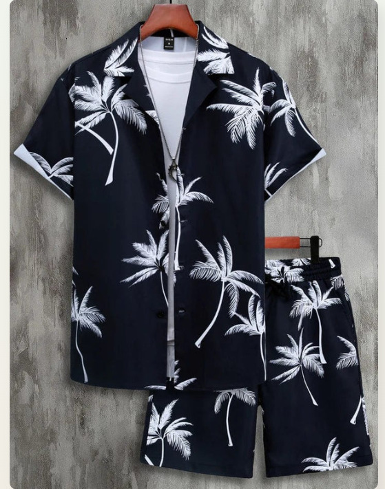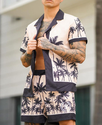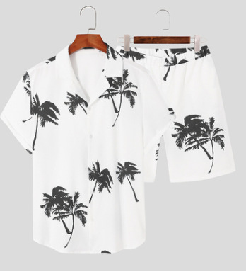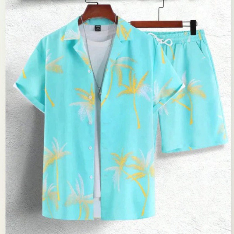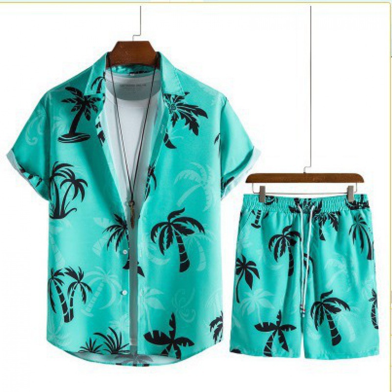 크로스 국경 소스 공장 여름 3D 디지털 인쇄 품질 남자의 짧은 소매 느슨한 셔츠 세트 비치 스타일