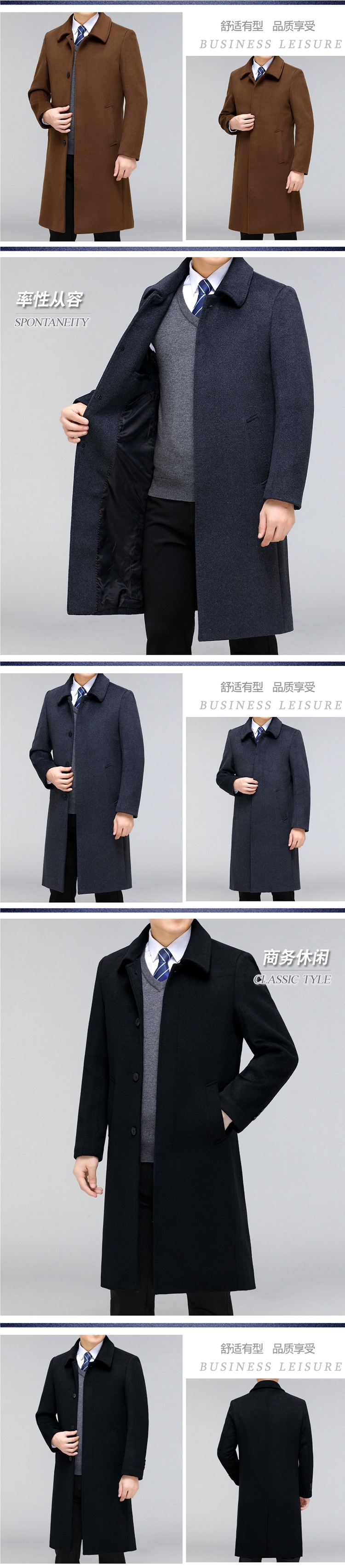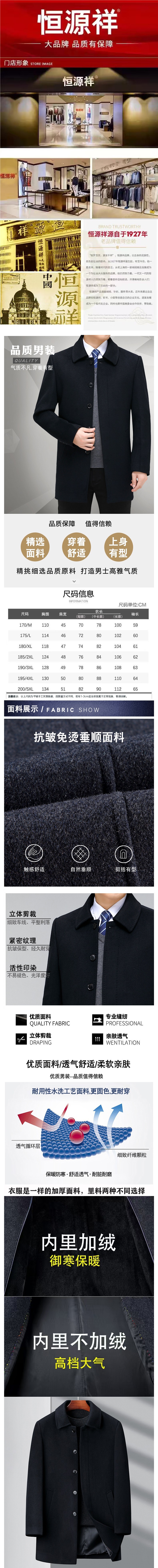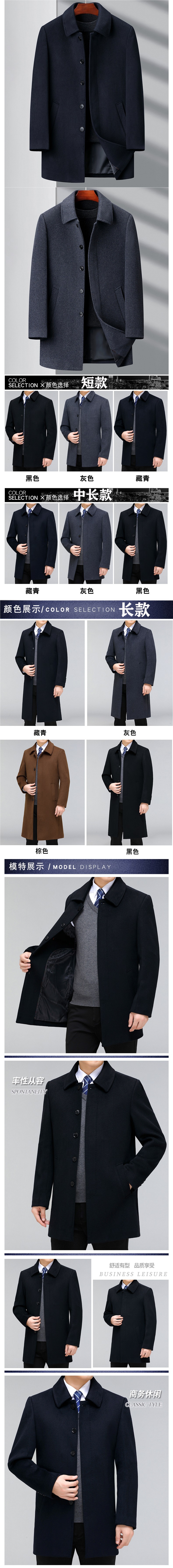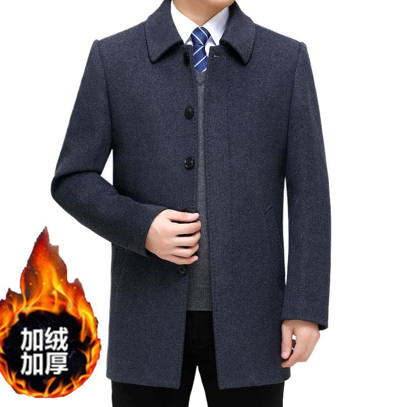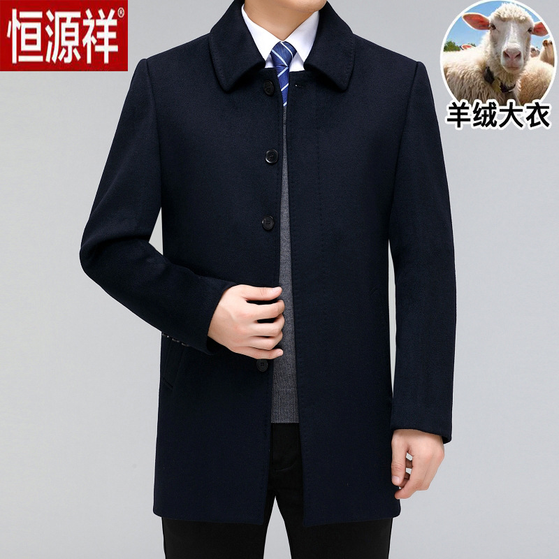 Hengyuanxiang 캐시미어 코트 남자 중간 길이 두꺼운 중년 캐주얼 아빠의 울 코트 코트
