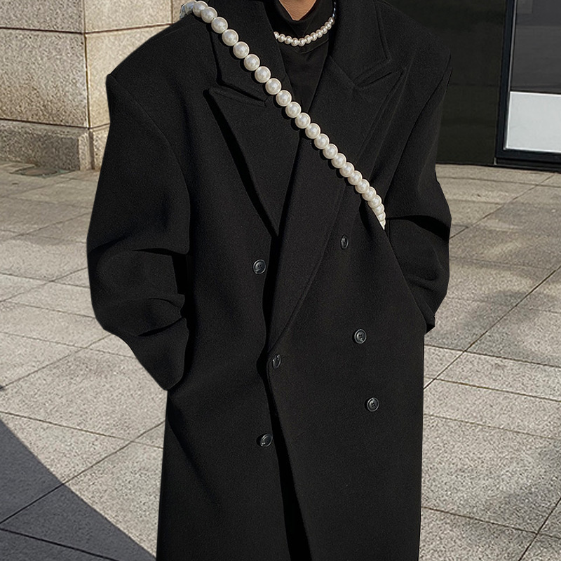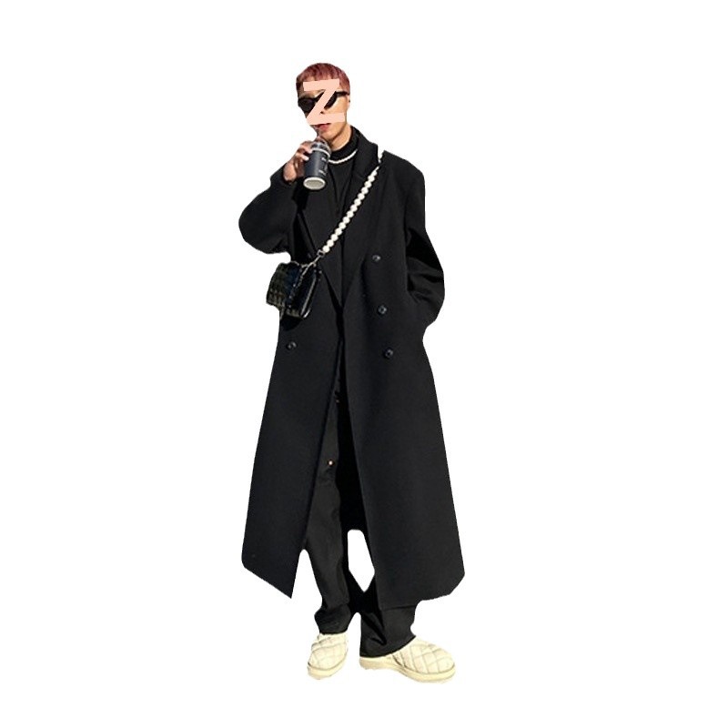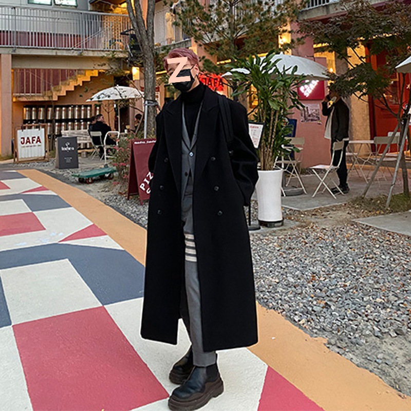 겨울 새 남자 코트 긴 무릎 길이 한국식 캐시미어 두꺼운 윈드 브레이커 슬림 핏 트렌디 더블 로우 모직 코트