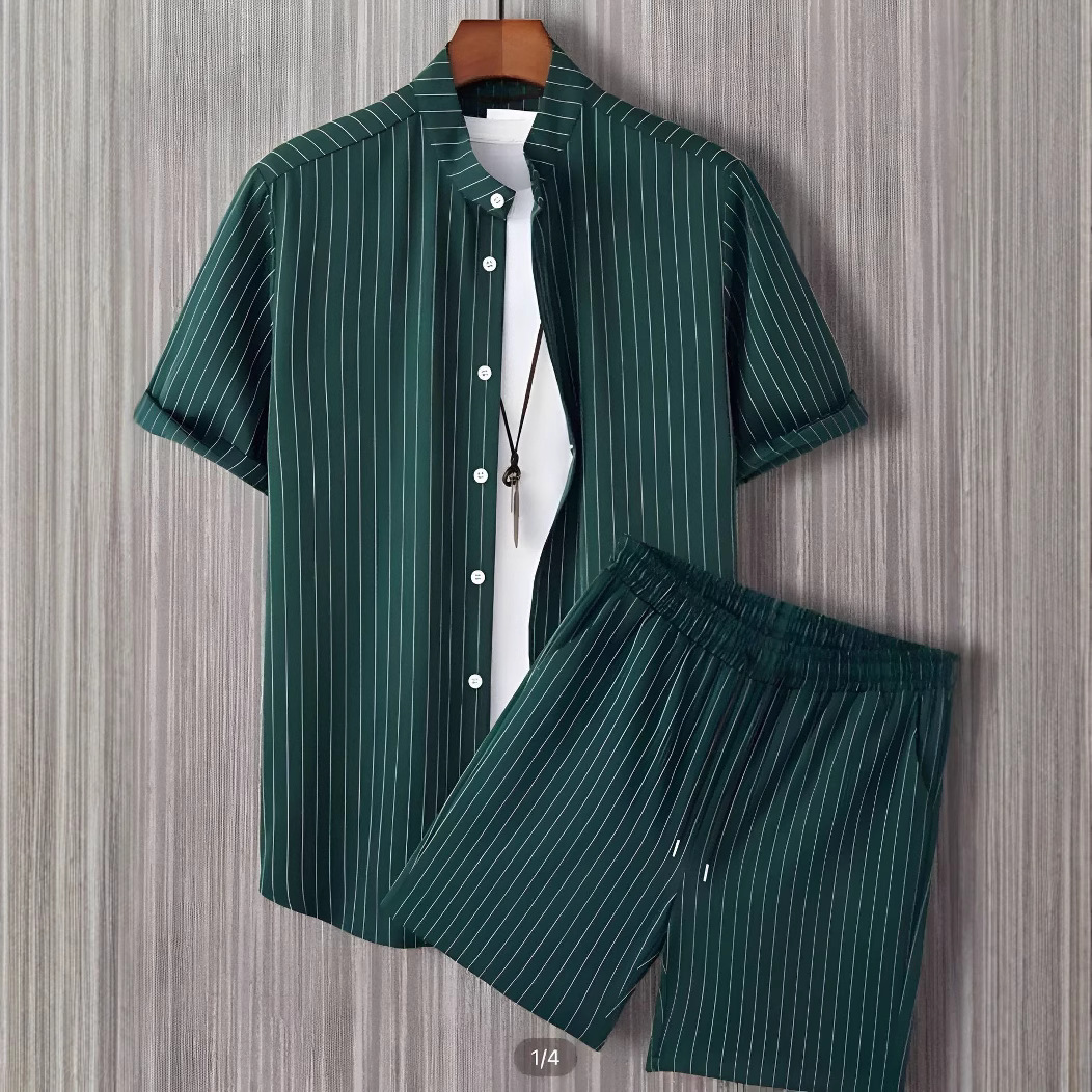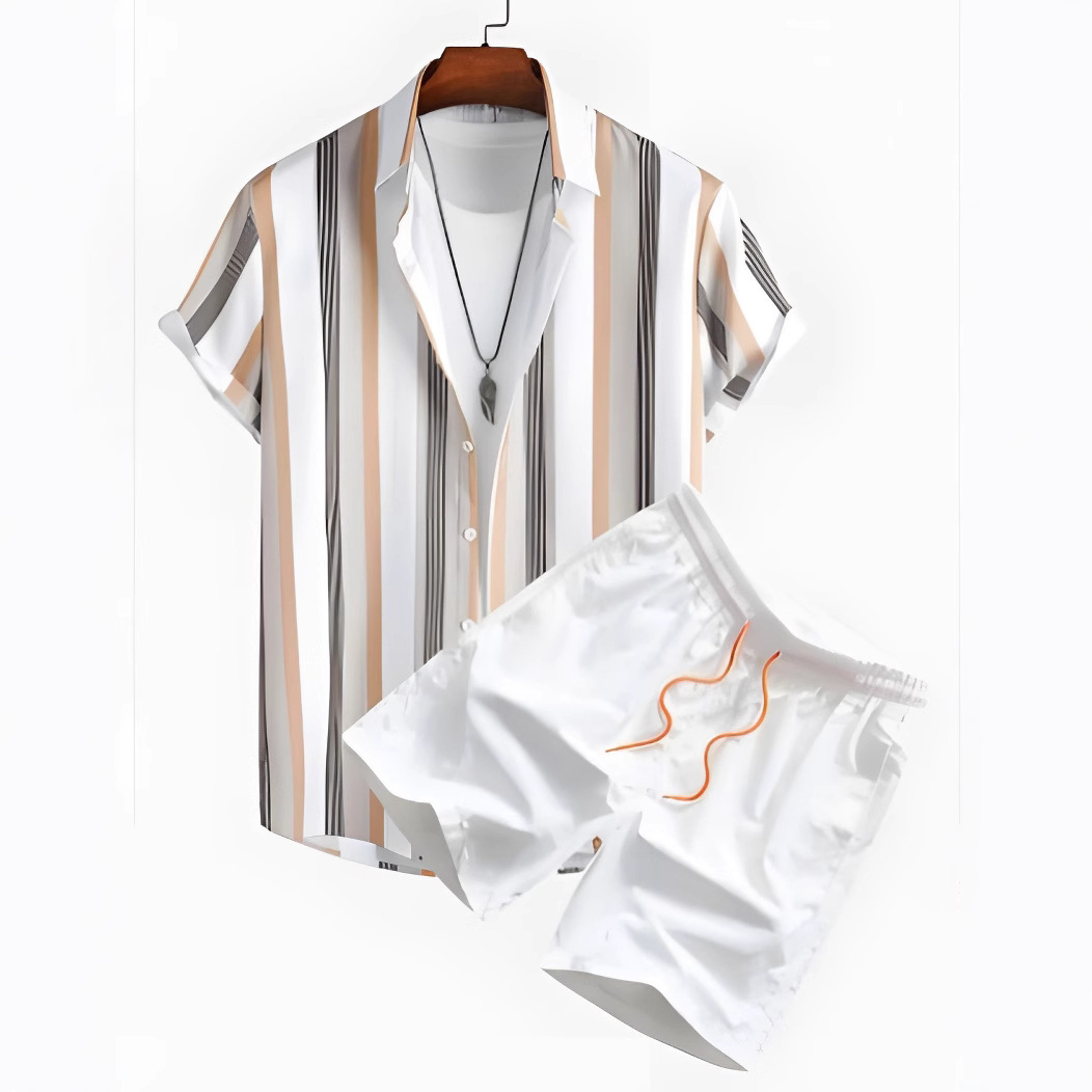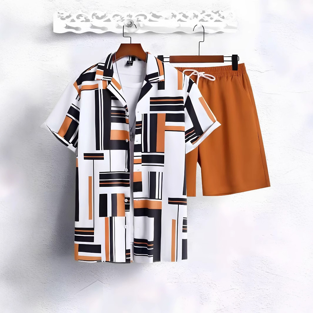 2024 아마존 TEMU 폭발 반팔 반팔 트렌디 3D 인쇄 하와이 국경 셔츠 반팔 반바지 남성 세트