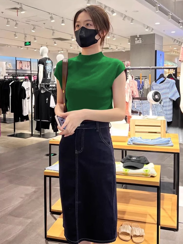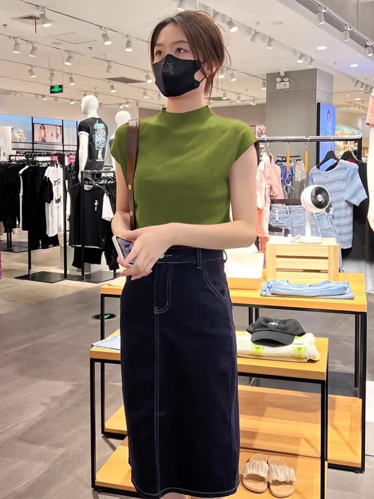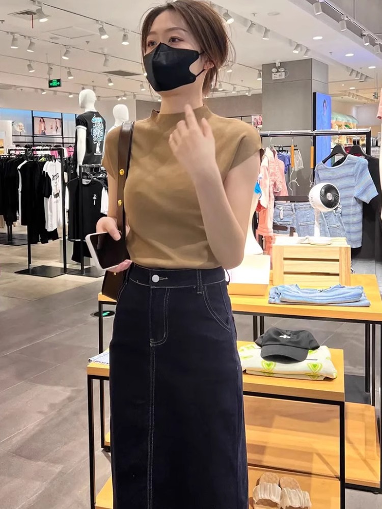 봄 얇은 아이스 실크 반소매 티셔츠 여성 서양식 최고의 새로운 패션 근접 기질 반소매 스웨터