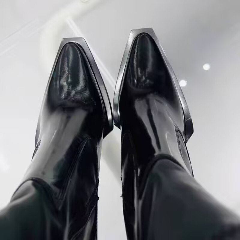 블랙 슬림 사이드 지퍼 하이힐 부츠 2025 새로운 쇼트 부츠 여성 지적 기모 두꺼운 힐 세실 패션 부츠