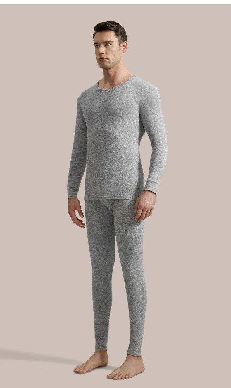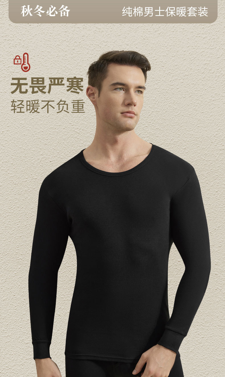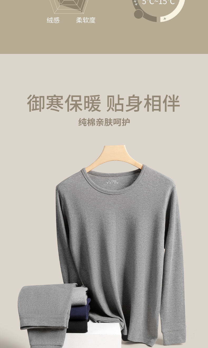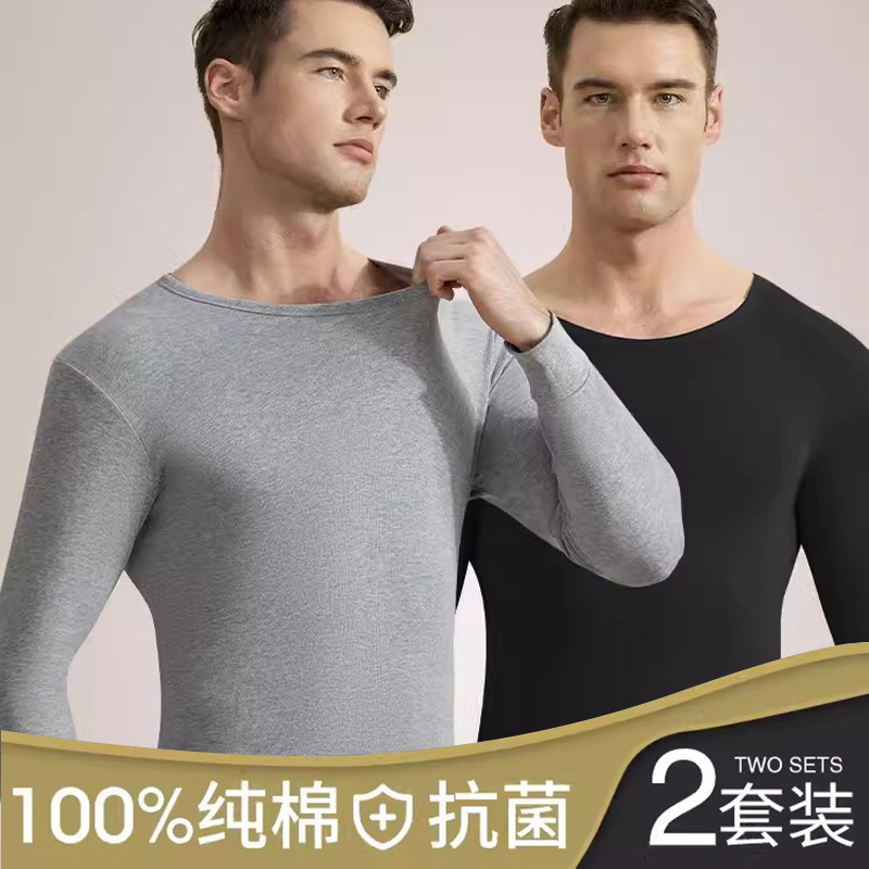 2024 새로운 순면 열 속옷 둥근 목 남자의 봄 가을과 겨울 가을 옷 가을 바지 청소년 슬림 세트