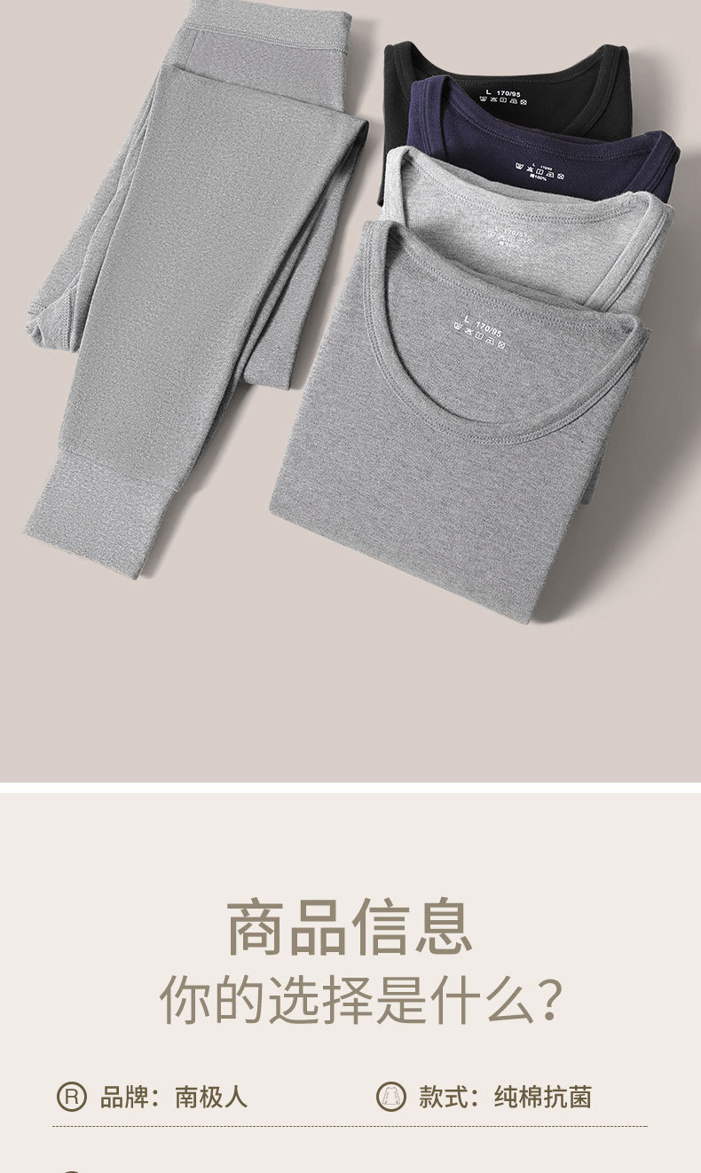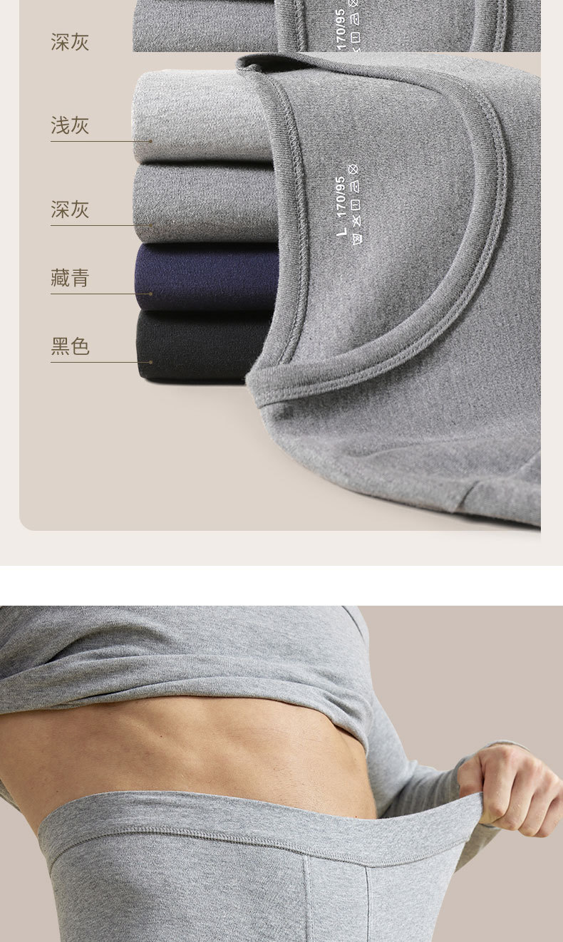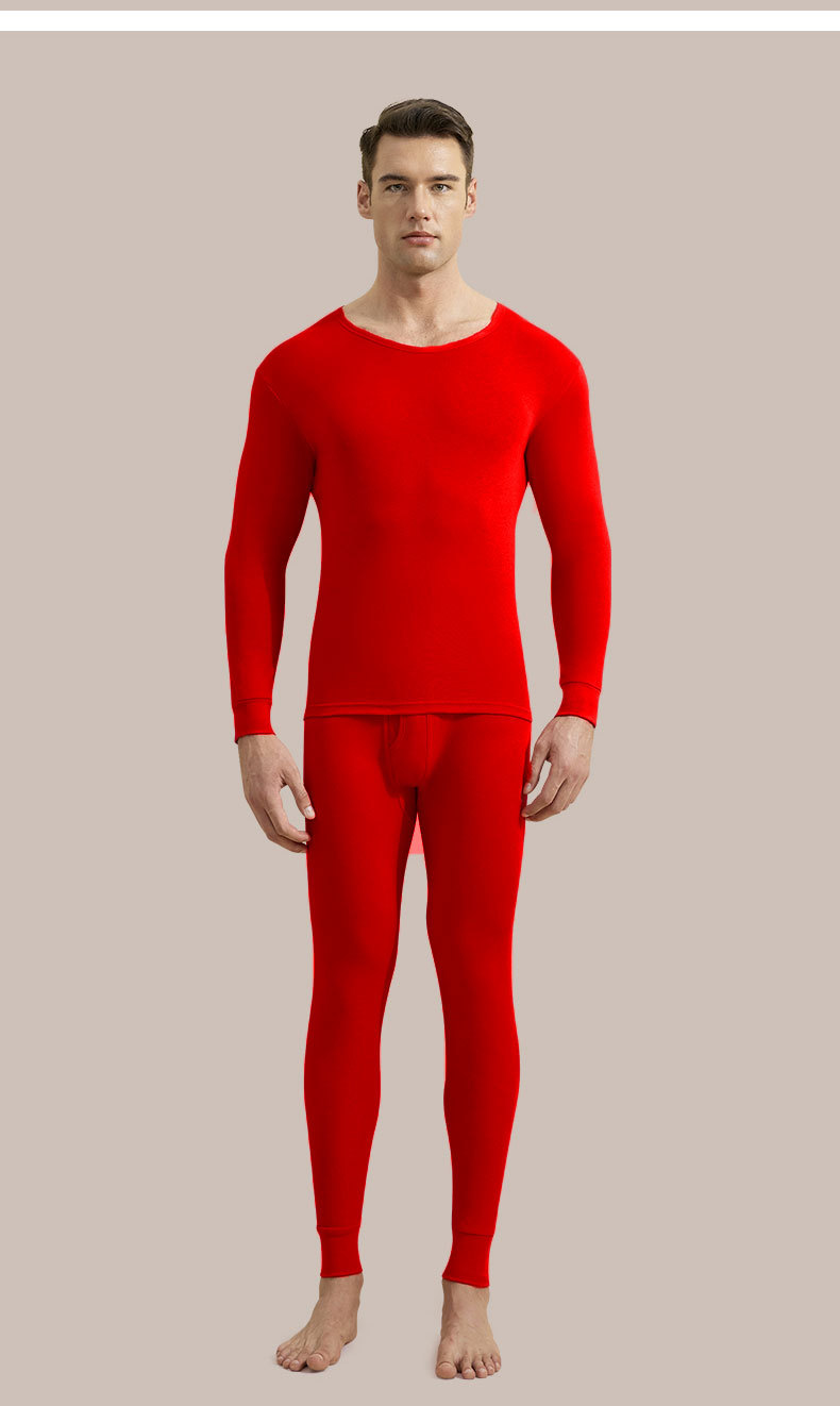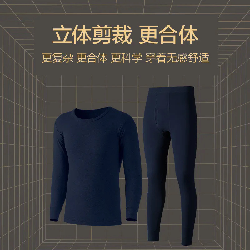 2024 새로운 순면 열 속옷 둥근 목 남자의 봄 가을과 겨울 가을 옷 가을 바지 청소년 슬림 세트