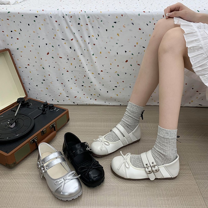 실버 빈티지 프랑스 스타일 라운드 발가락 얕은 입 플랫 신발 여성의 2024 새로운 여름 부드러운 밑바닥 발레 스타일 메리 제인 신발