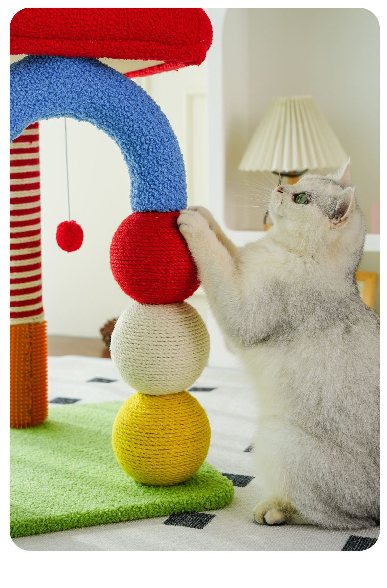 야옹 요정 고양이 등반 랙 플랫폼 고양이 장난감 사이 살 칼럼 다기능 내마모성 발톱 고양이 등반 랙 봉제 다기능 고양이 둥지