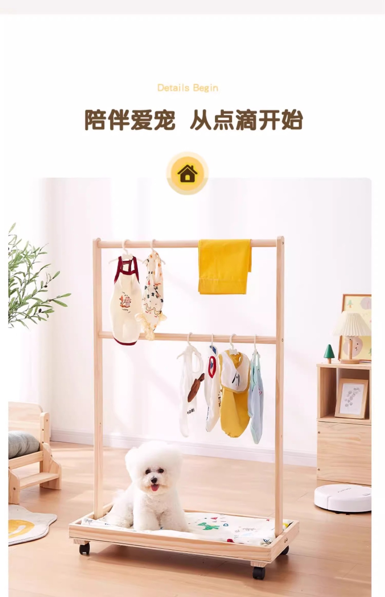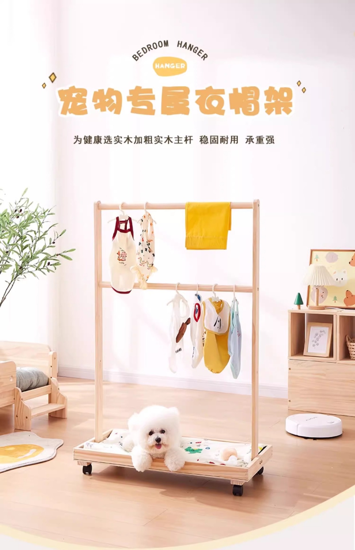 애완 동물 옷걸이 단단한 나무 옷걸이 개 침실 바닥 작은 옷장 실내 다기능 저장 랙