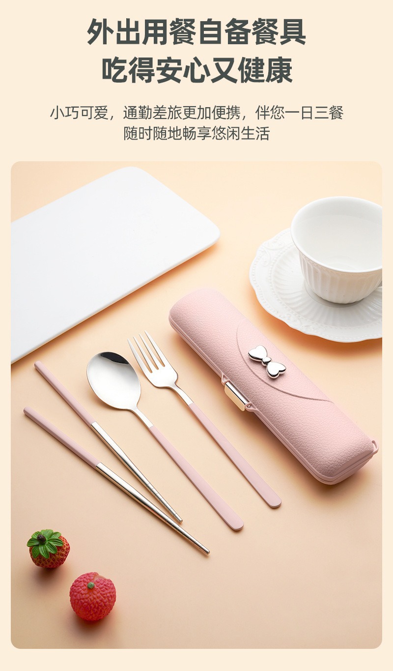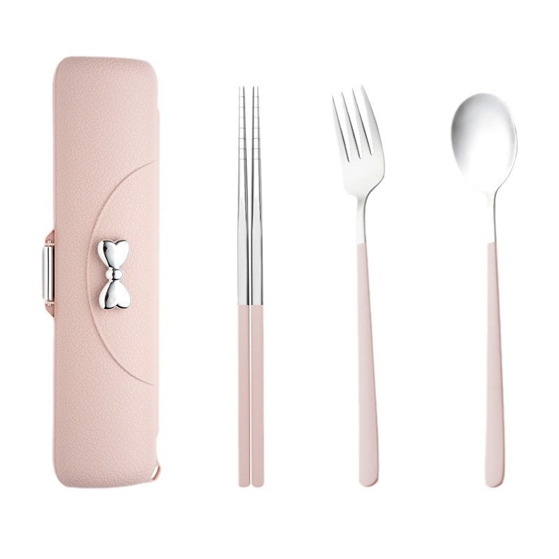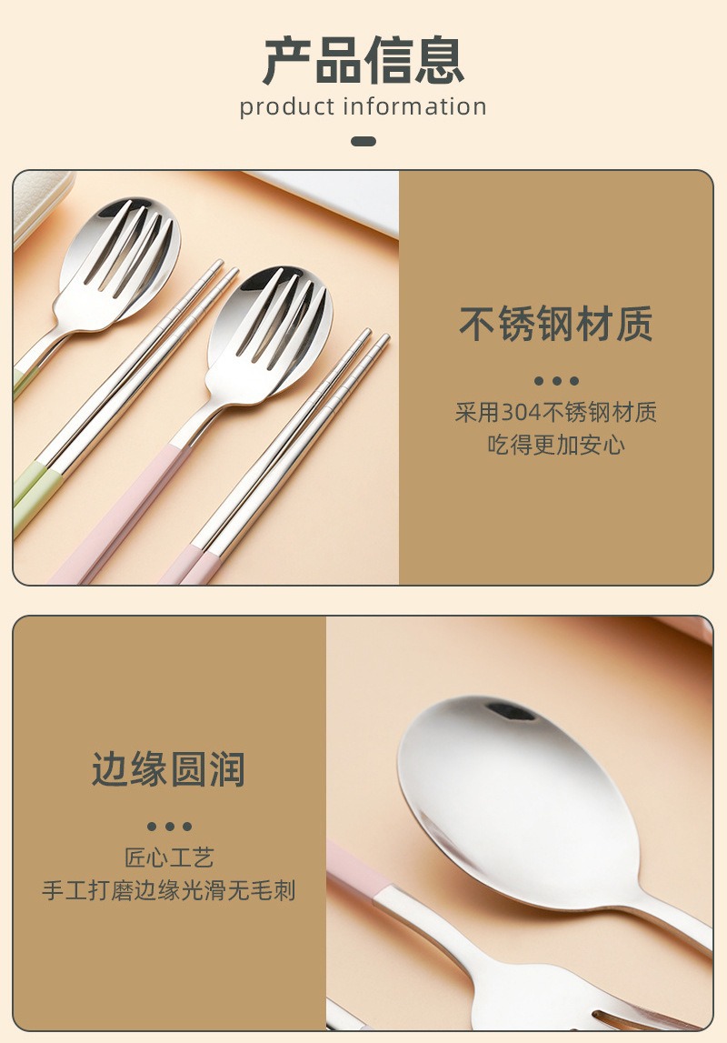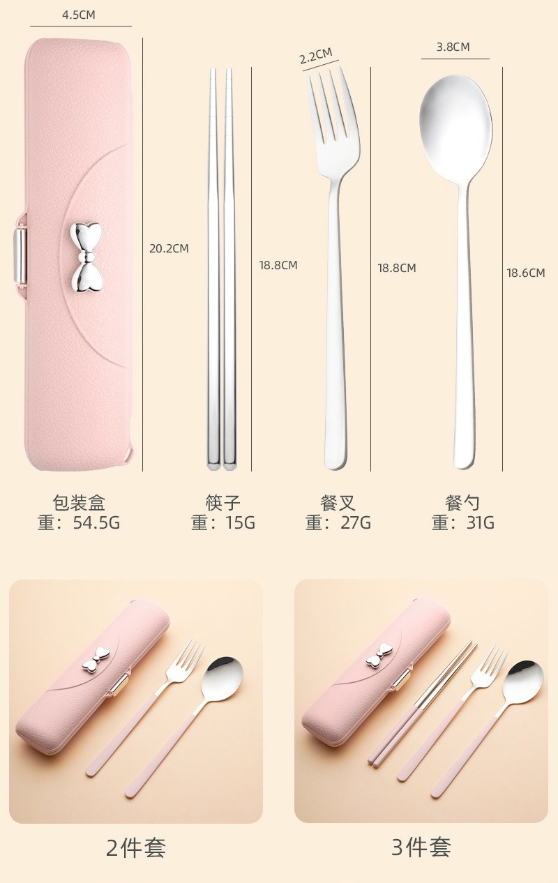 야외 편리한 식기 304 스테인레스 스틸 한국 스타일 스푼 포크 젓가락 3 종 세트 학생 여행 선물 식기 세트