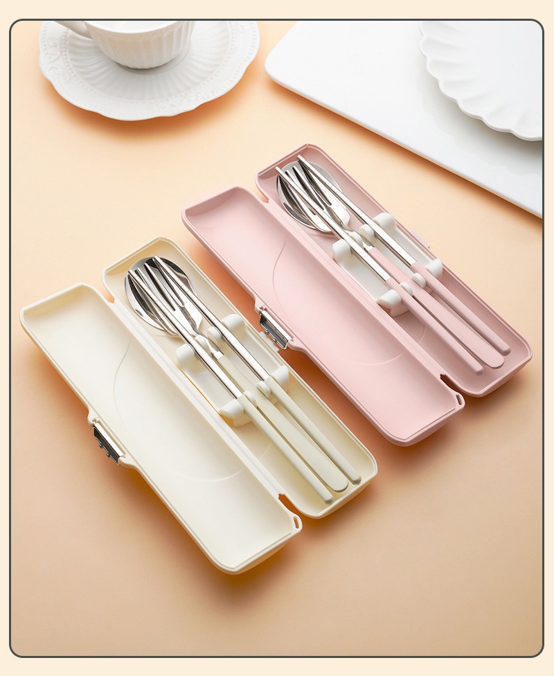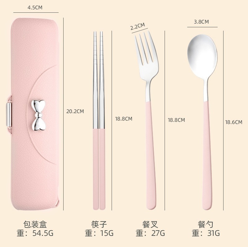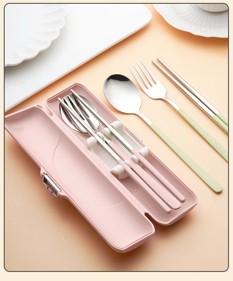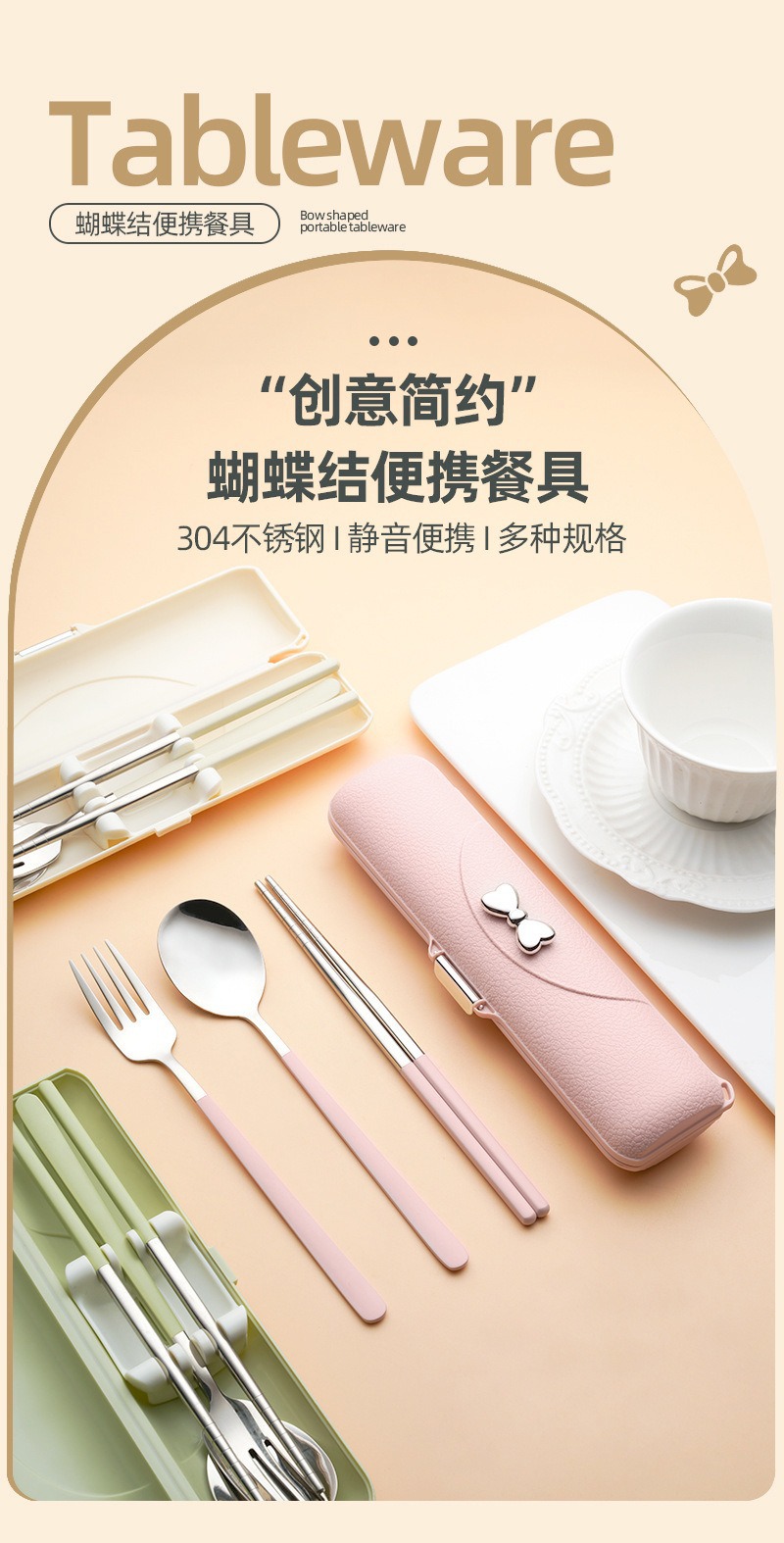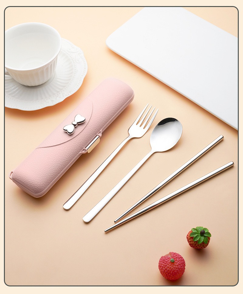 야외 편리한 식기 304 스테인레스 스틸 한국 스타일 스푼 포크 젓가락 3 종 세트 학생 여행 선물 식기 세트