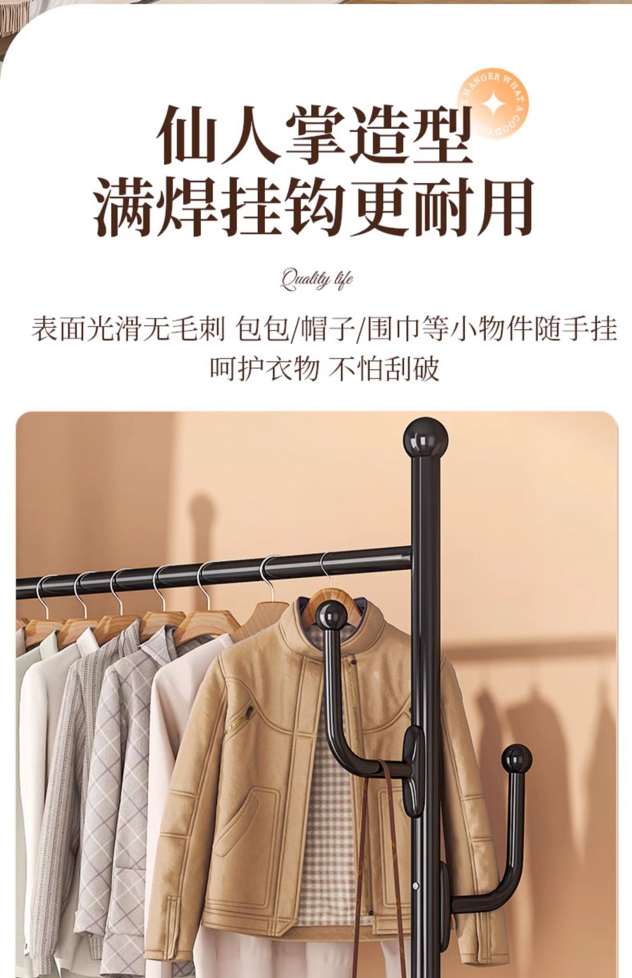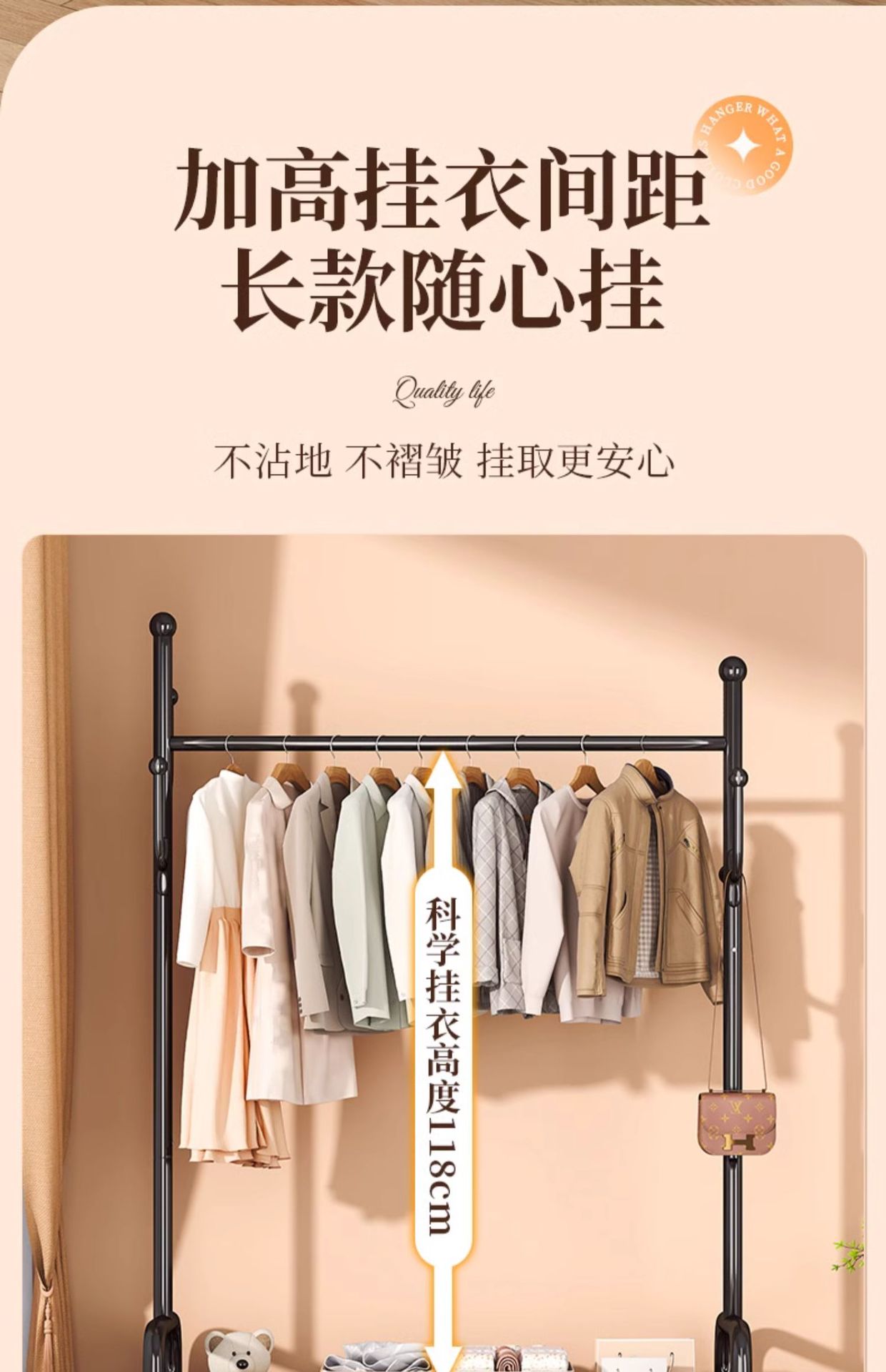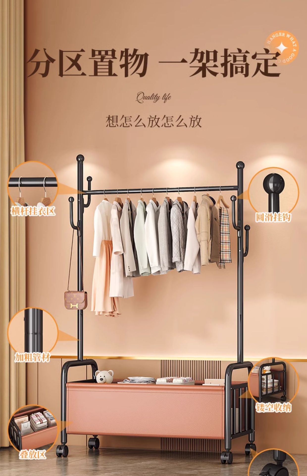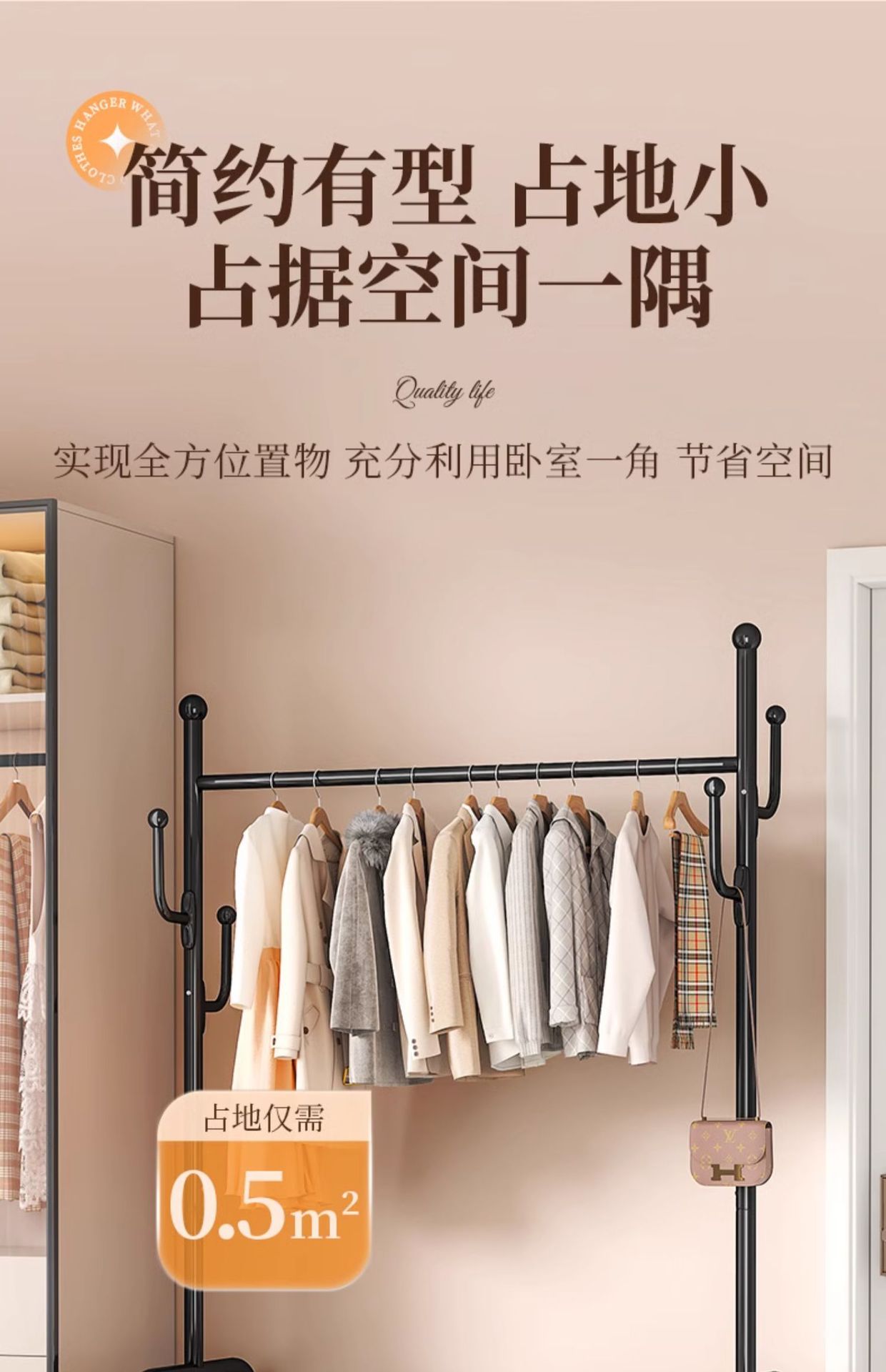 가정용 바닥 걸이 거실 침실 교수형 의류 가방 보관 랙 이동식 가죽 보관 용 코트 랙