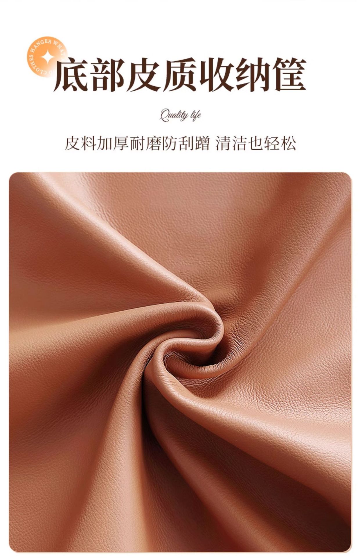 [화이트 오렌지 60cm] 두꺼운 옷걸이봉|옷걸이 6개 + 가죽 수납바구니