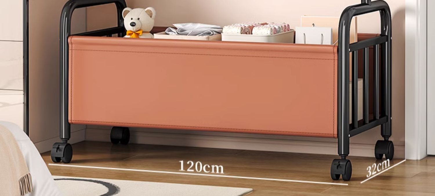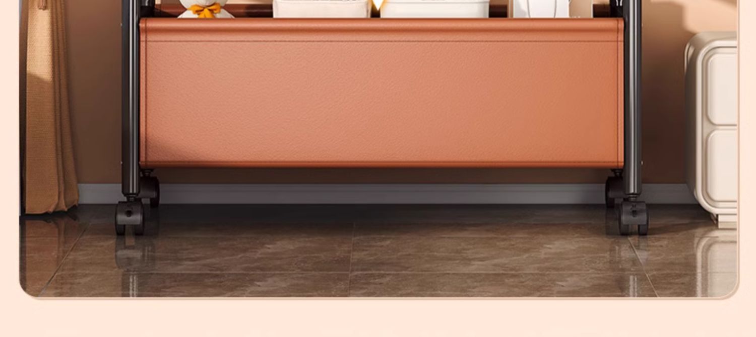 [화이트 오렌지 120cm] 두꺼운 옷걸이봉|옷걸이 6개 + 가죽 수납바구니