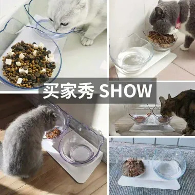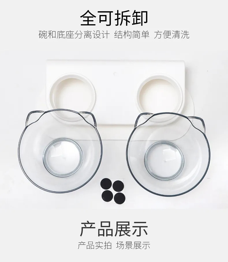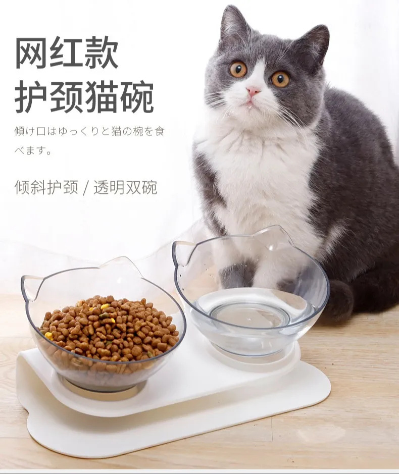 기울기 고양이 그릇 15 도 비스듬한 입 오버 헤드 목 보호 투명 고양이 귀 플라스틱 더블 그릇 개 그릇 고양이 먹이 용품