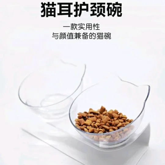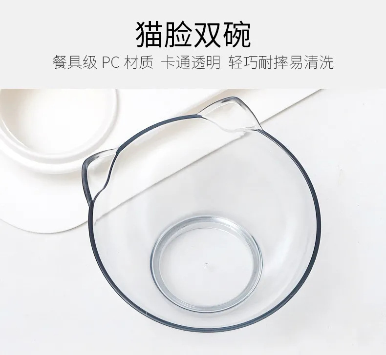 기울어진 투명 고양이 귀 이중 그릇