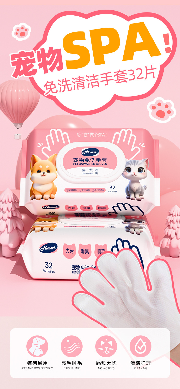 애완 동물 워시없는 장갑 고양이 개 젖은 물티슈 특수 목욕없는 드라이 클리닝 아티팩트 청소 용품 탈취제 젖은 물티슈