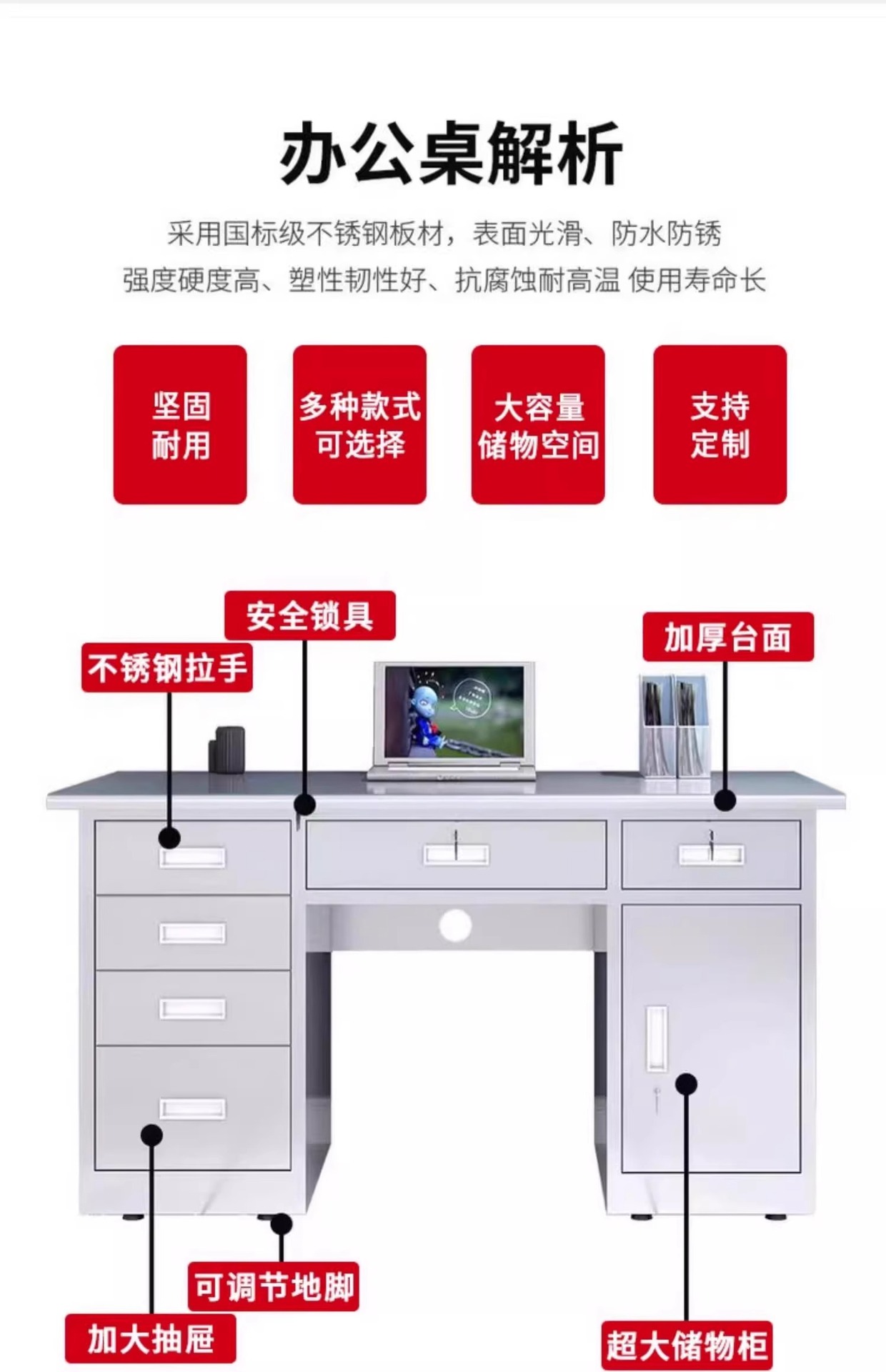 304 스테인레스 스틸 데스크 서랍 작업장 직사각형 작업대 무균 실험실 컴퓨터 테이블 두껍게