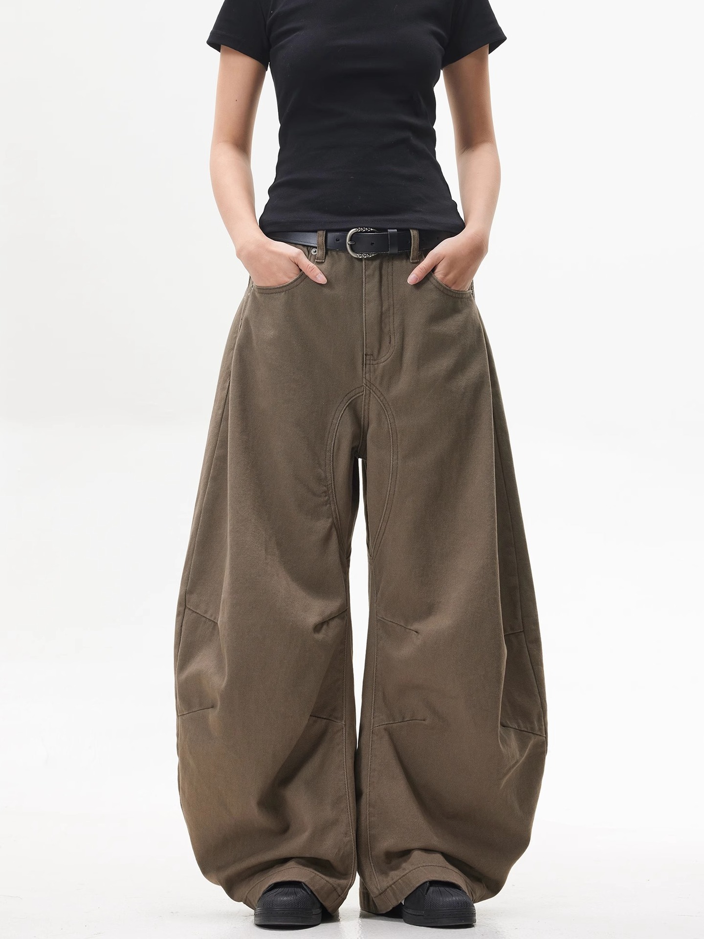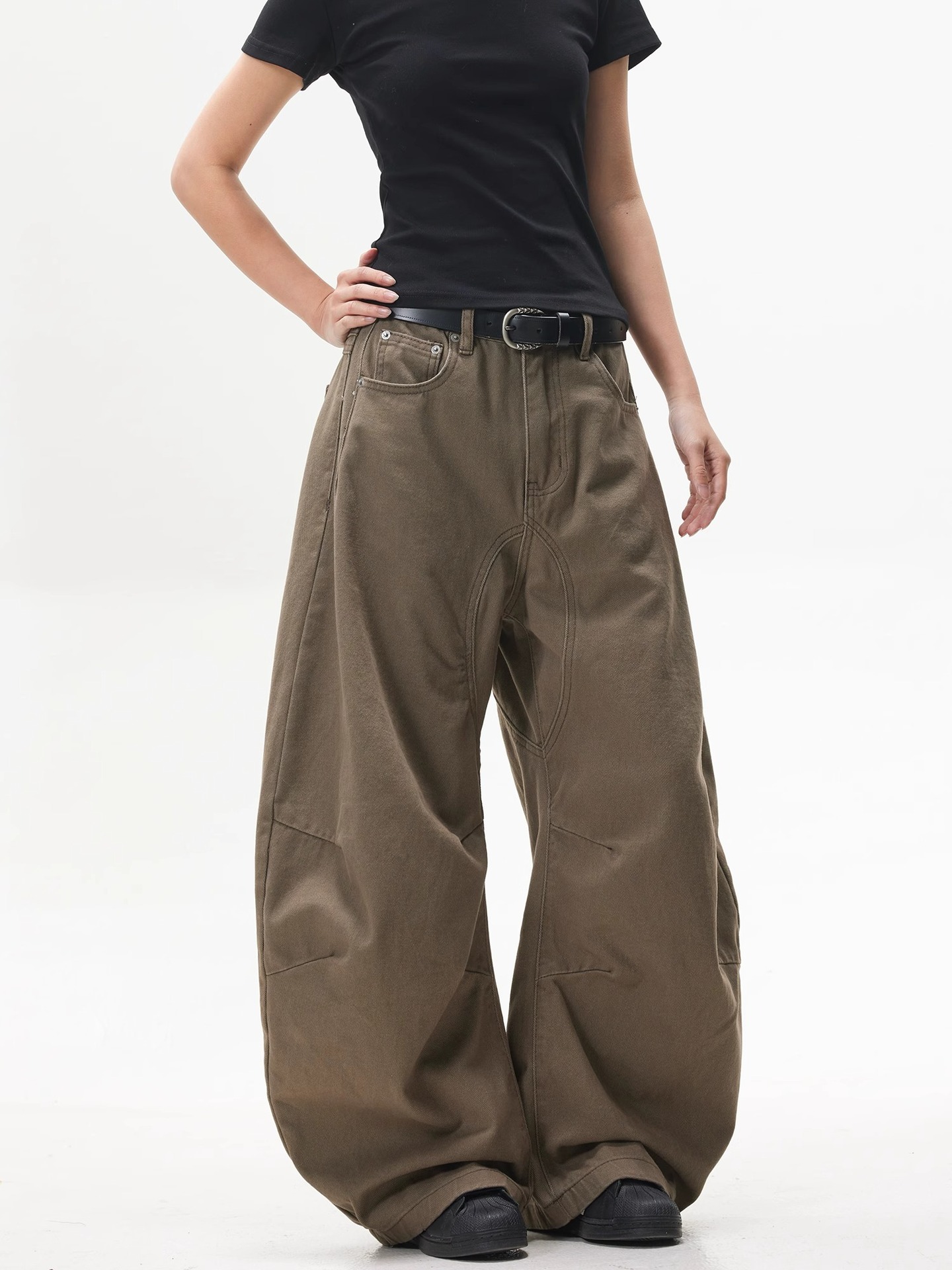 아메리칸 스타일 레트로 3 차원 프로필 시미 타르 청바지 여성의 봄과 가을 새로운 느슨한 캐주얼 하이 엔드 올 매치 롱 바지