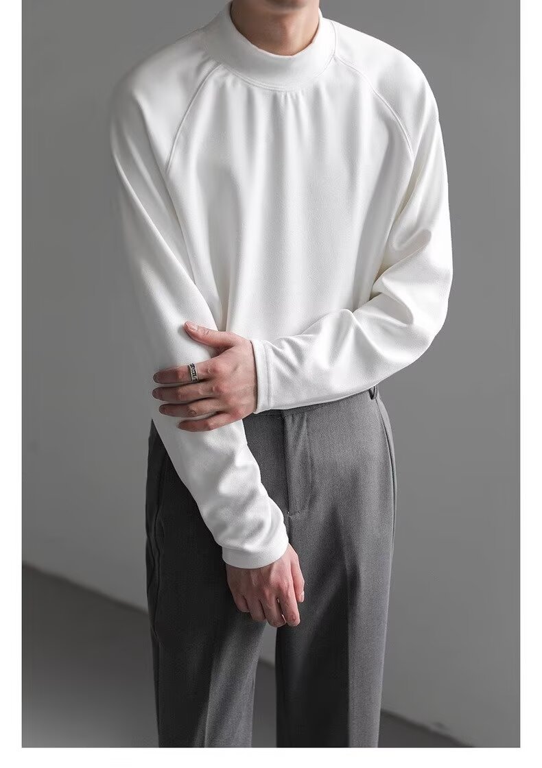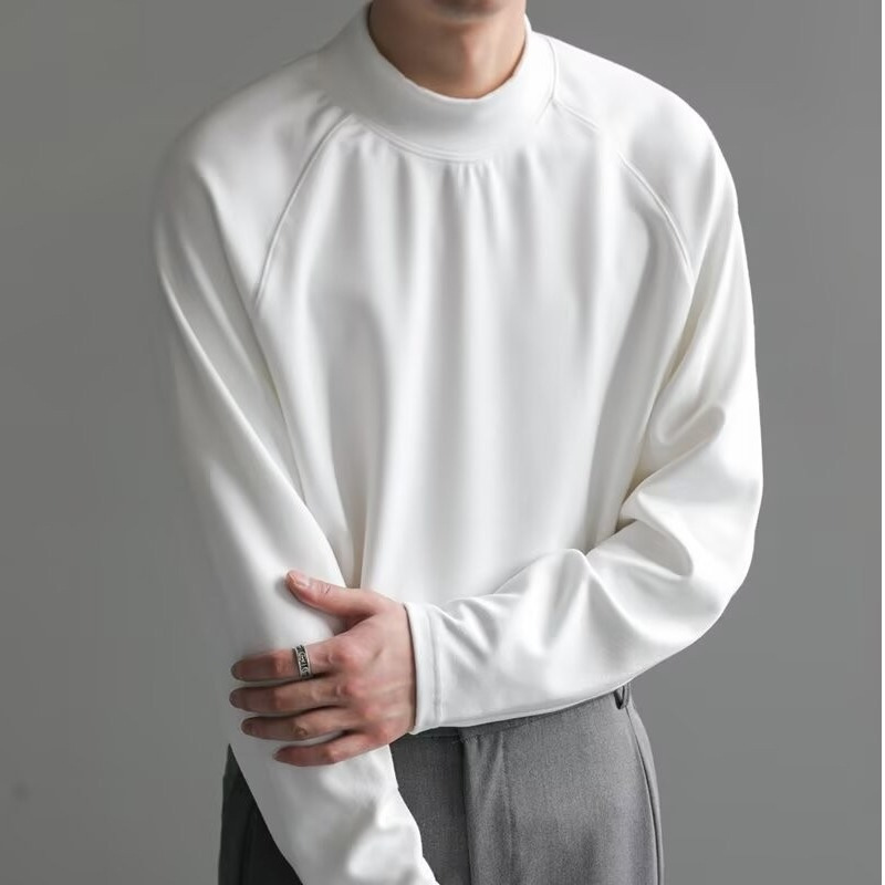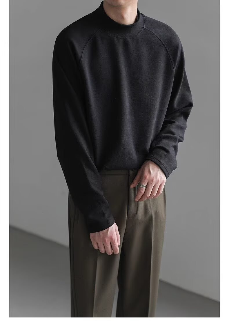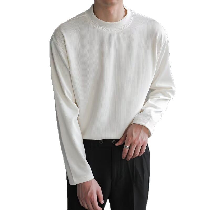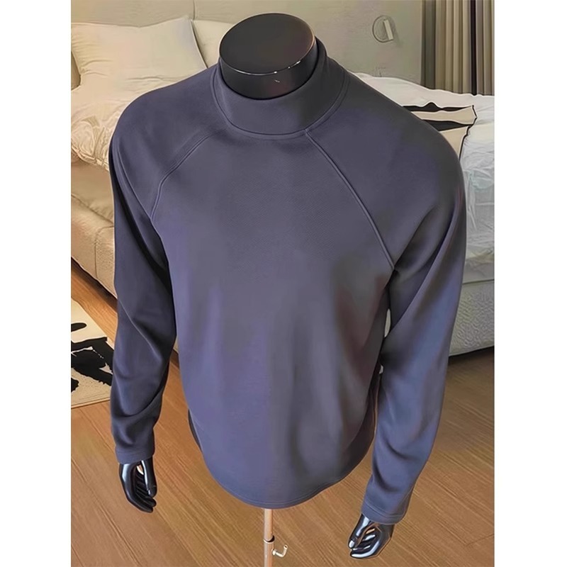 미국식 양면 양털 긴팔베이스 셔츠 남자 가을과 겨울 따뜻한 반 높이 목 티셔츠 솔리드 컬러 티셔츠 트렌디 탑