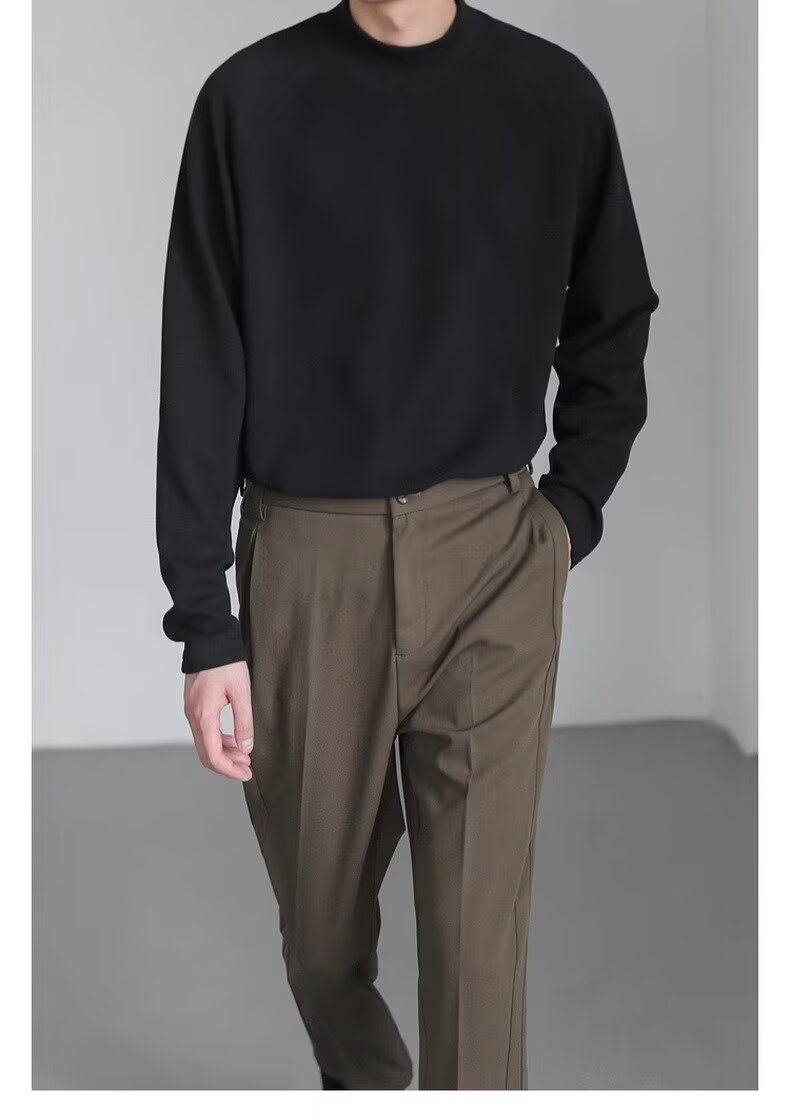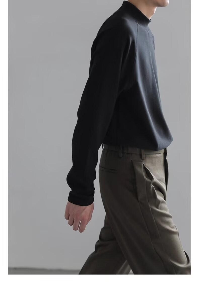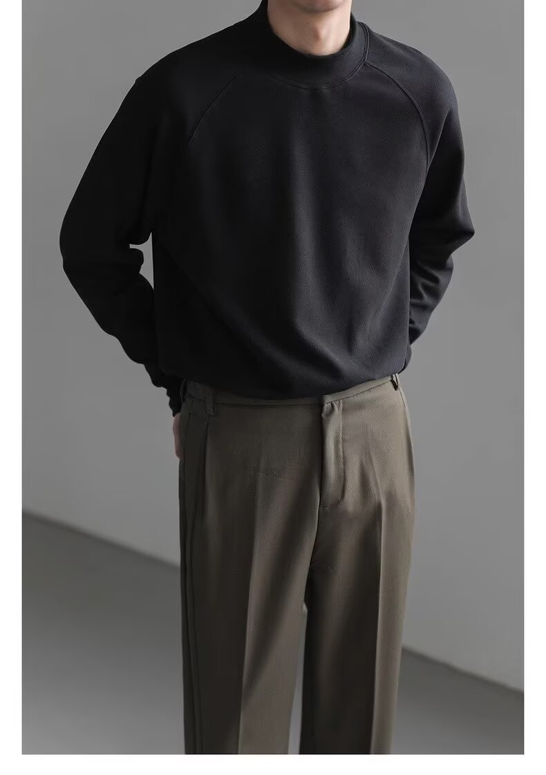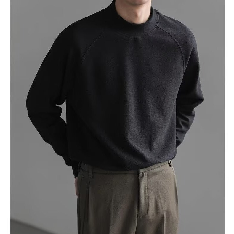 미국식 양면 양털 긴팔베이스 셔츠 남자 가을과 겨울 따뜻한 반 높이 목 티셔츠 솔리드 컬러 티셔츠 트렌디 탑