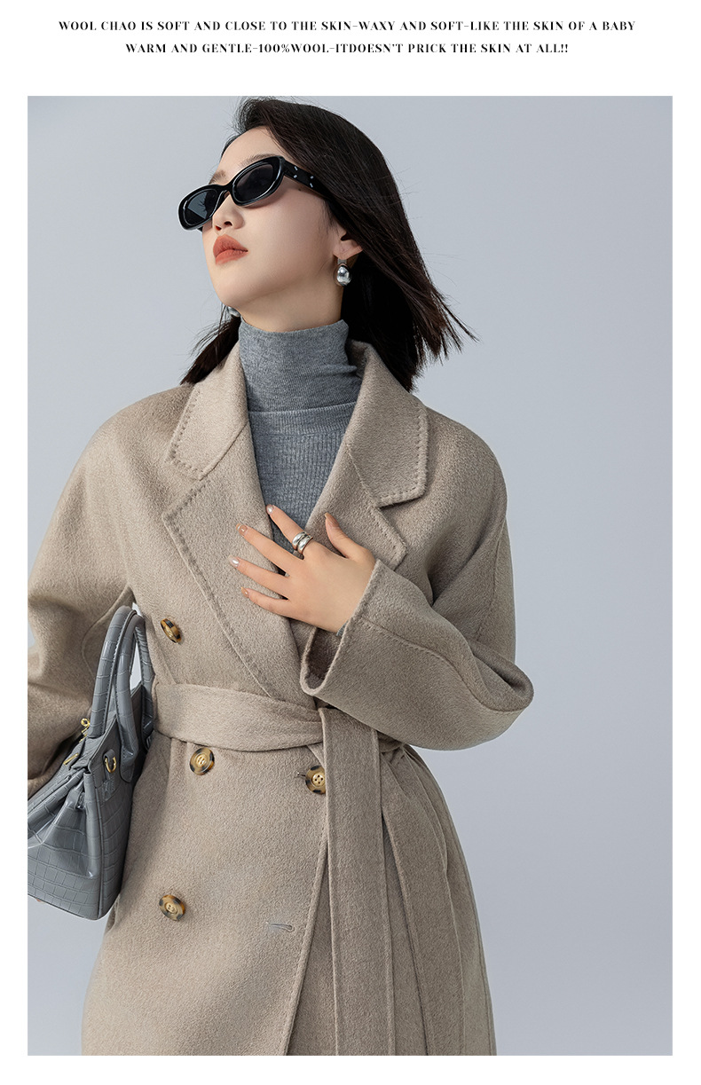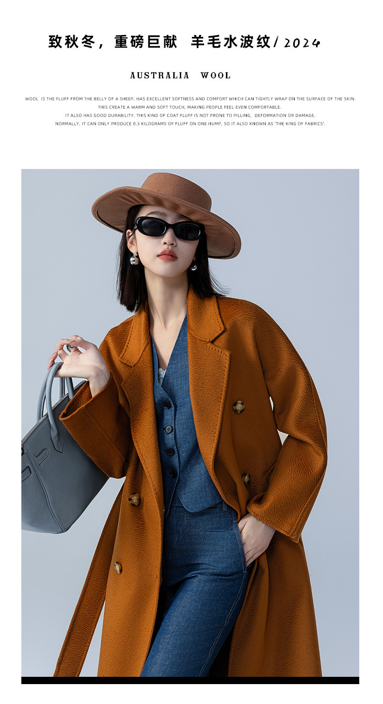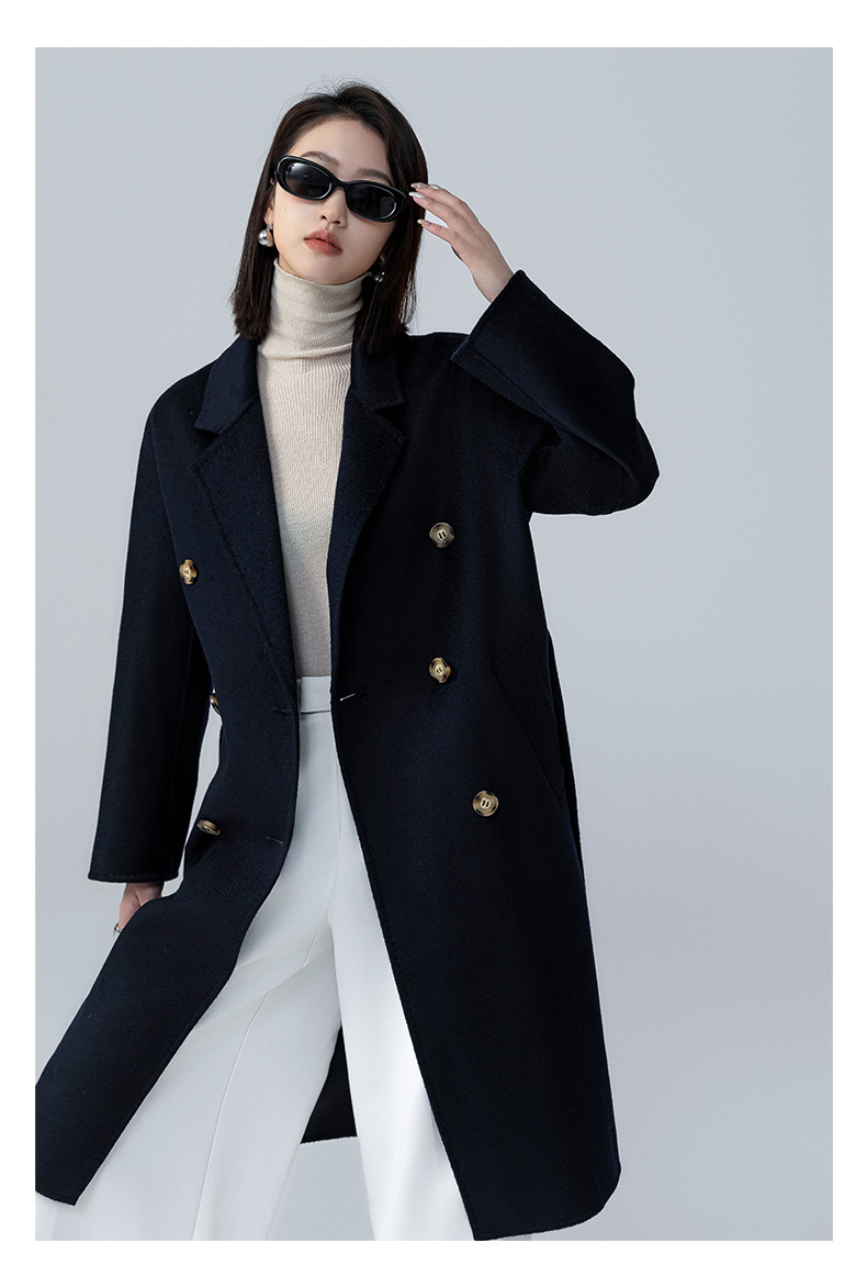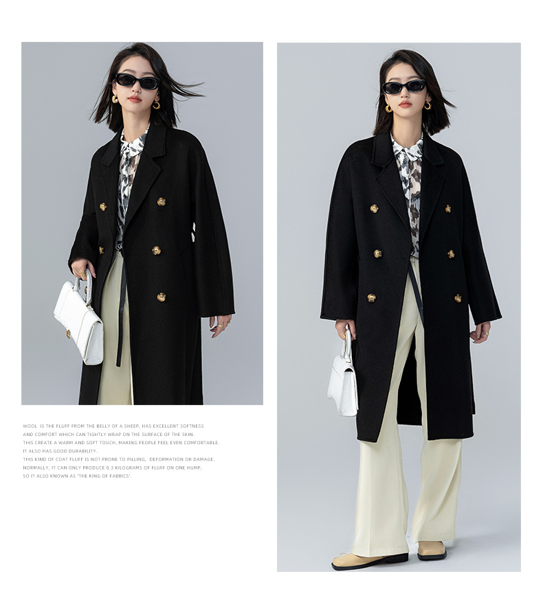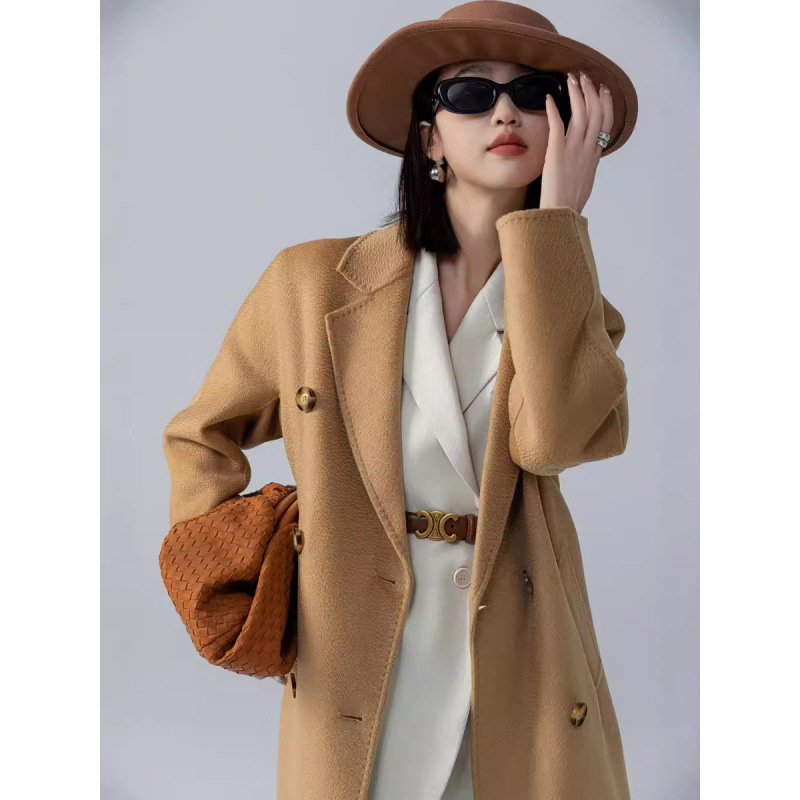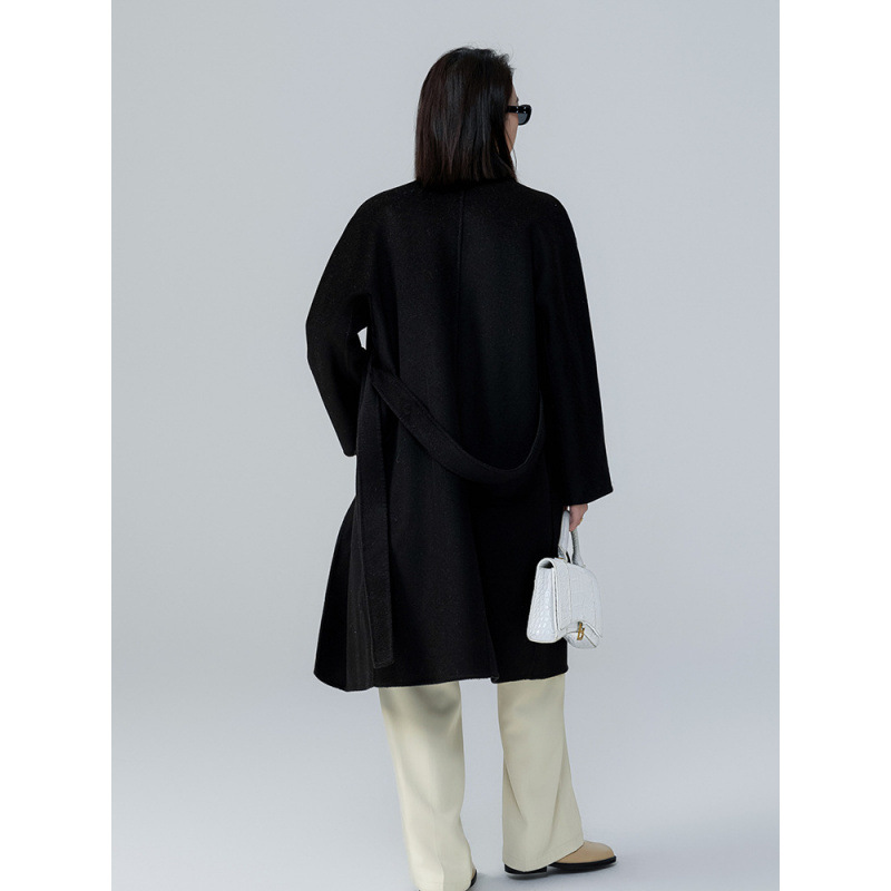 어깨 100 울 워터 리플 코트 고급 센스 양면 스트레이트 세트 801 여성용 모직 코트