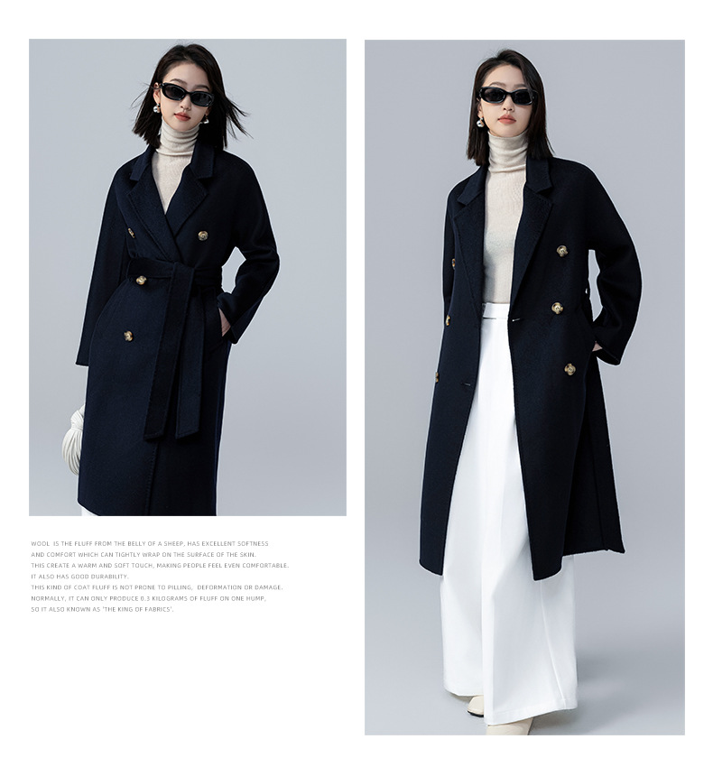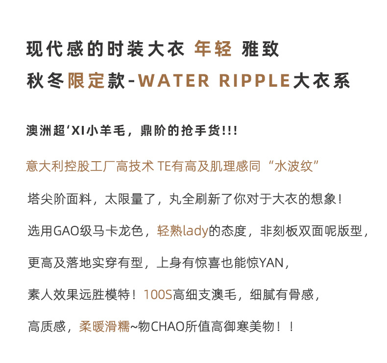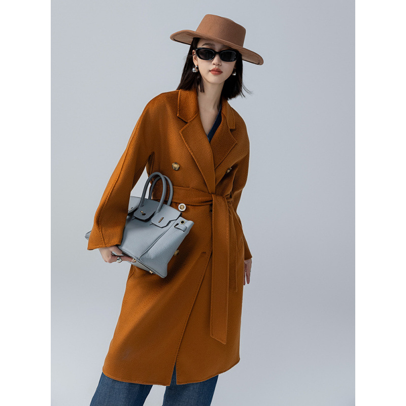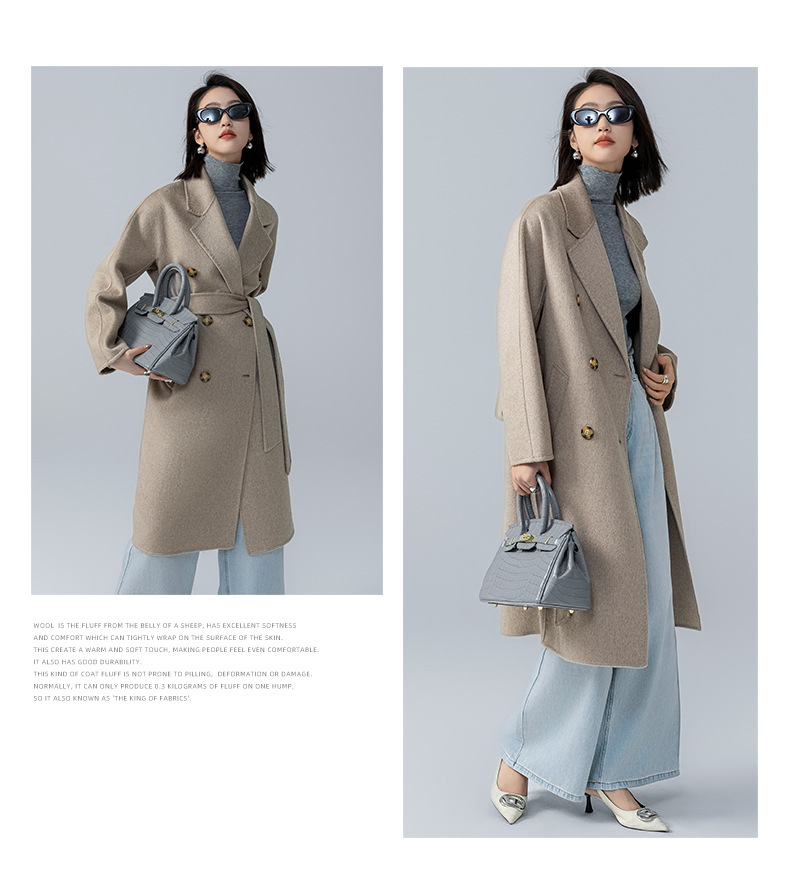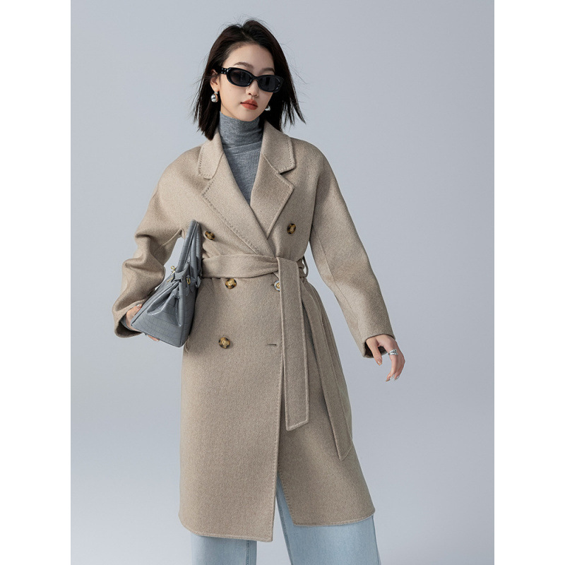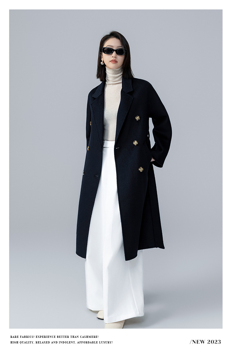 어깨 100 울 워터 리플 코트 고급 센스 양면 스트레이트 세트 801 여성용 모직 코트