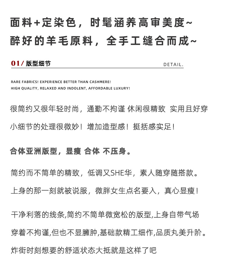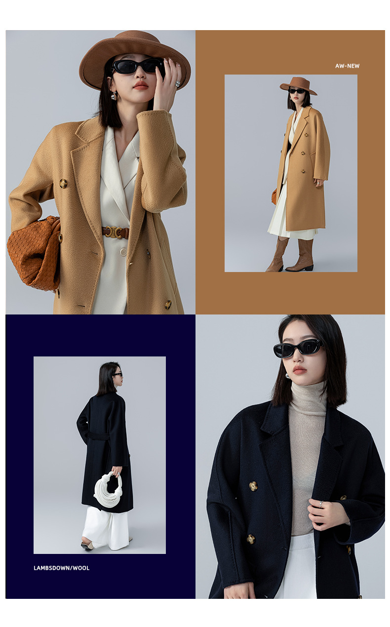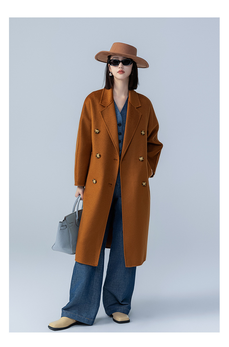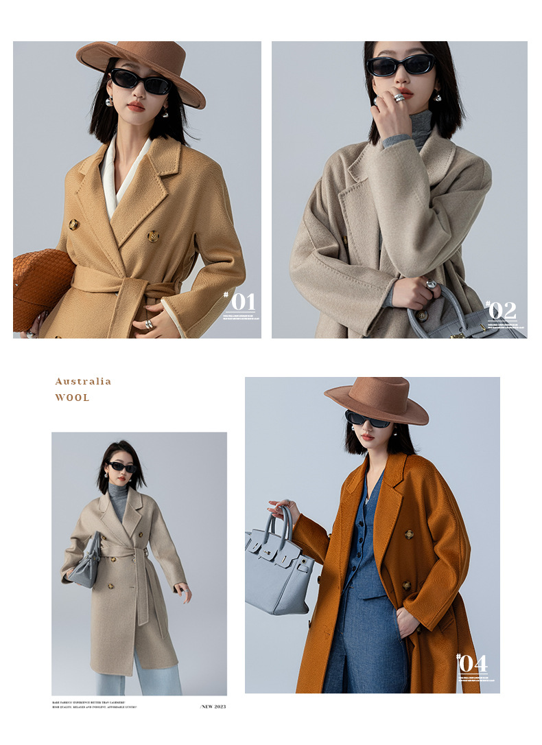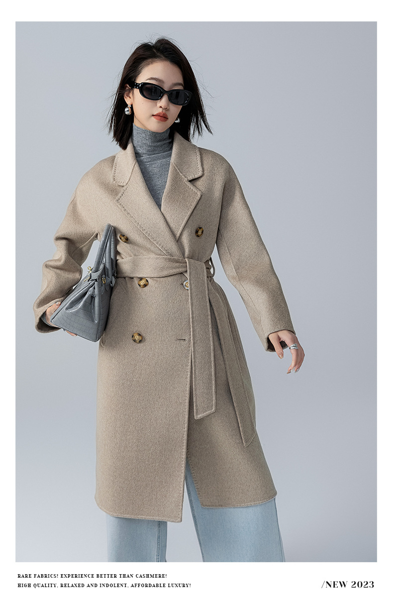 어깨 100 울 워터 리플 코트 고급 센스 양면 스트레이트 세트 801 여성용 모직 코트