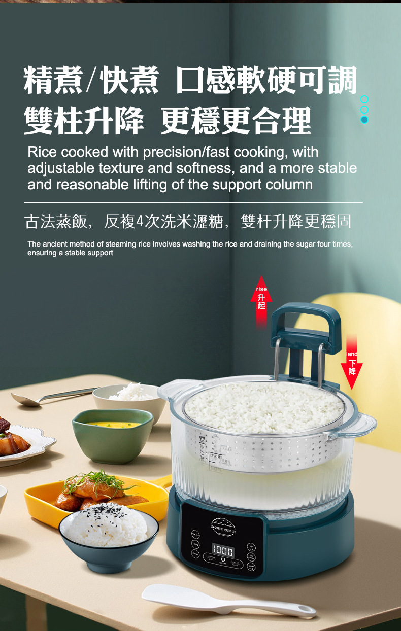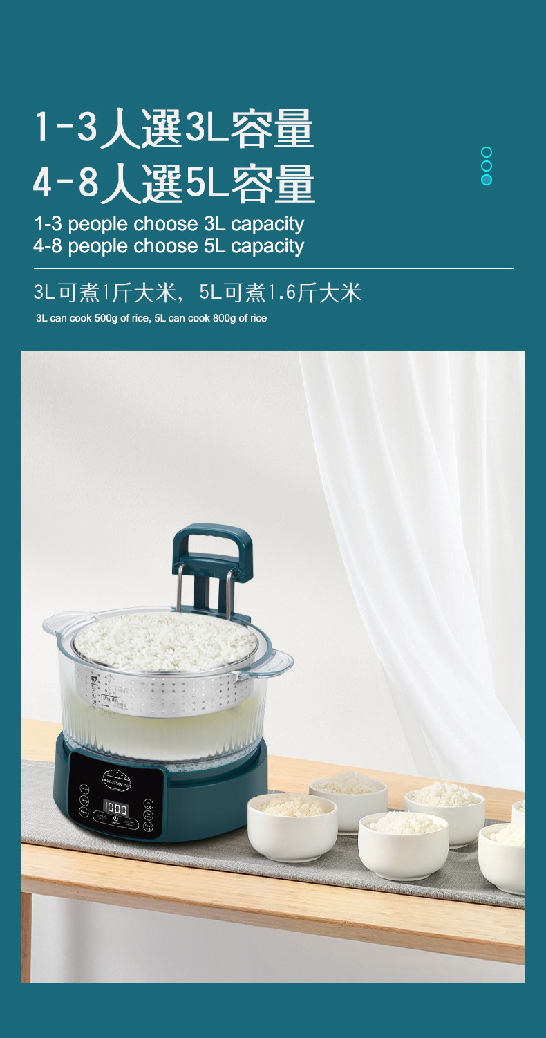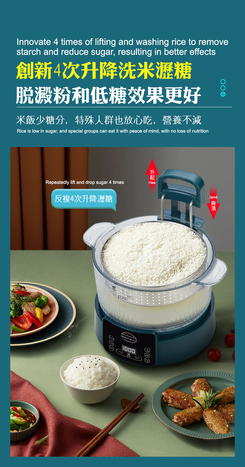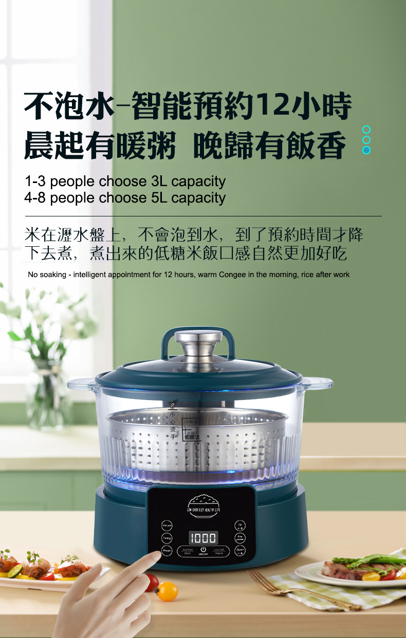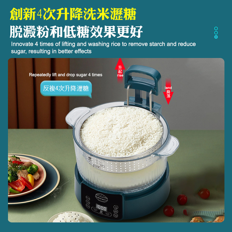110V 다기능 밥솥 가정용 지능형 리프팅 밥솥 쌀 수프 분리 제어 설탕 김이 나는 쌀 유리 투명 3L