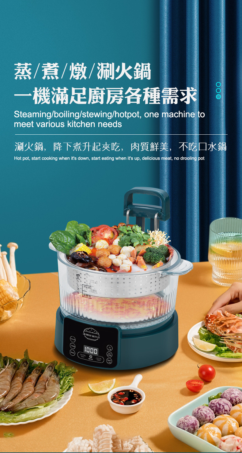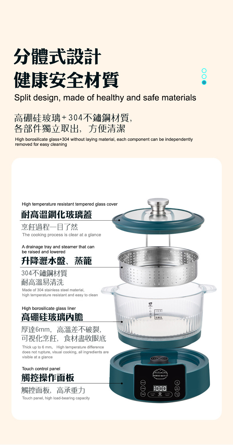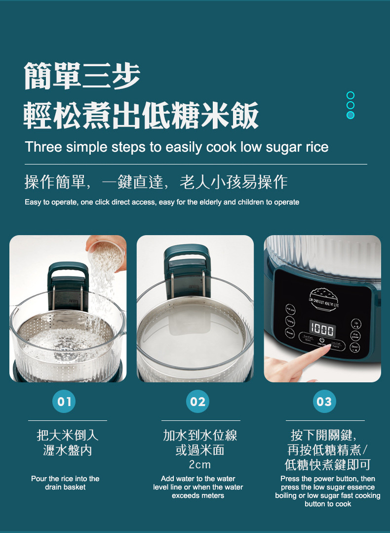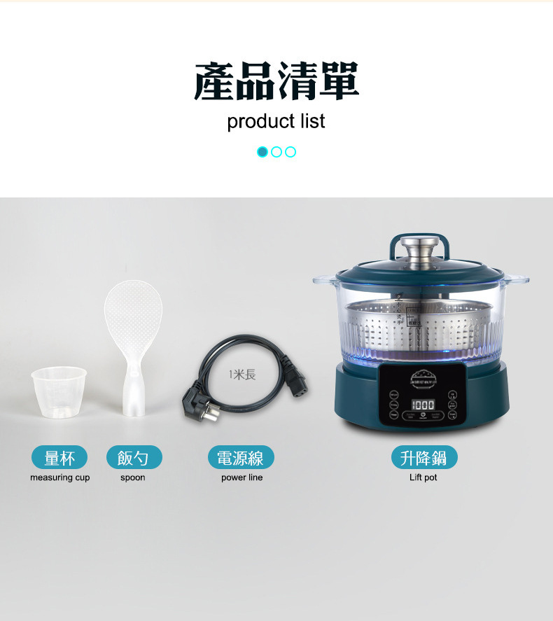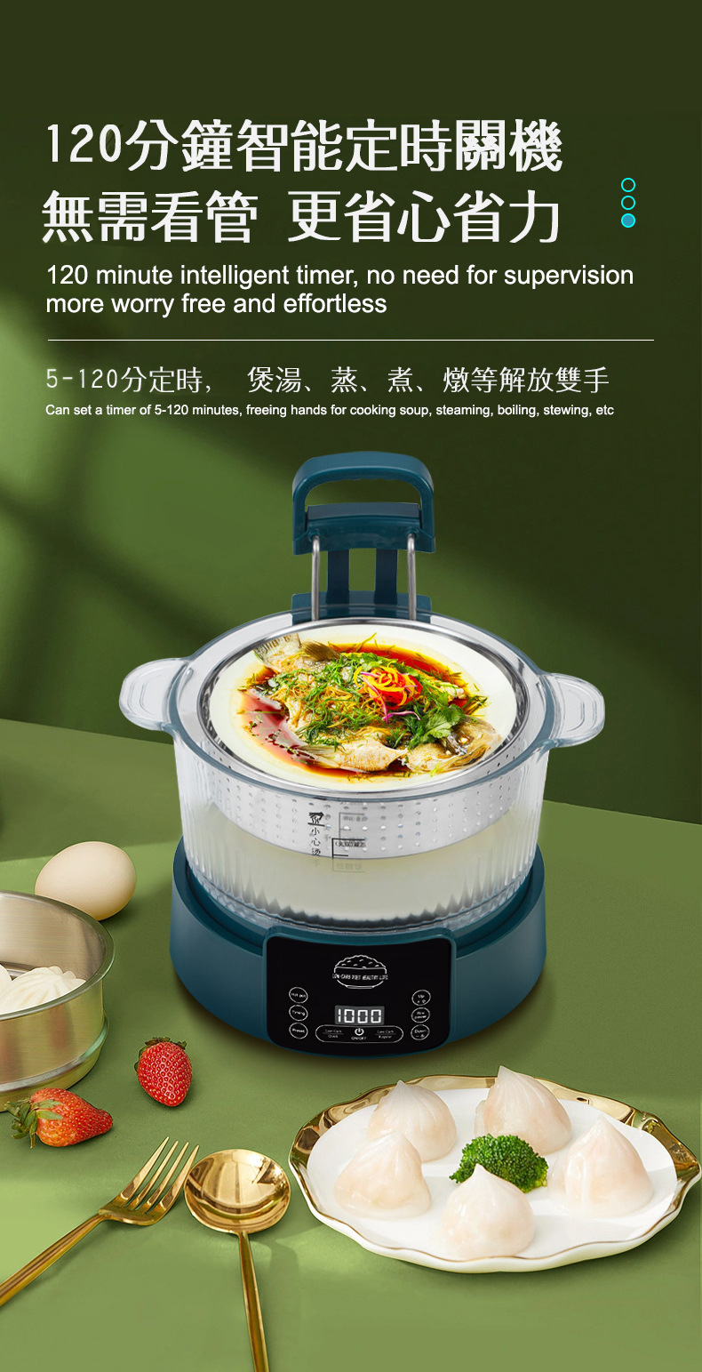110V 다기능 밥솥 가정용 지능형 리프팅 밥솥 쌀 수프 분리 제어 설탕 김이 나는 쌀 유리 투명 3L