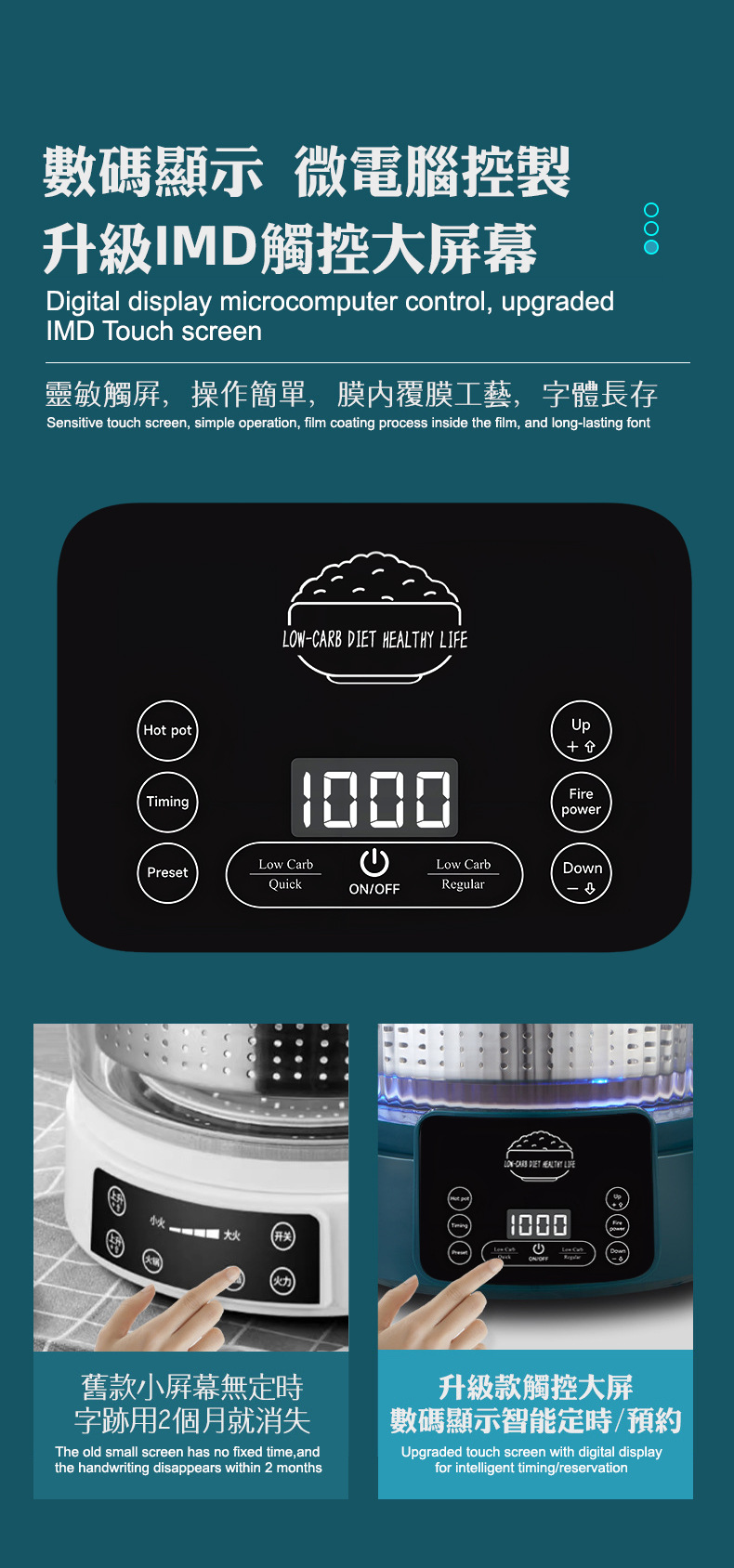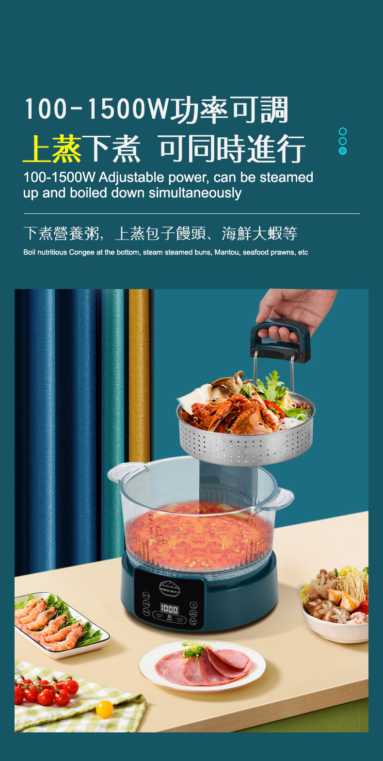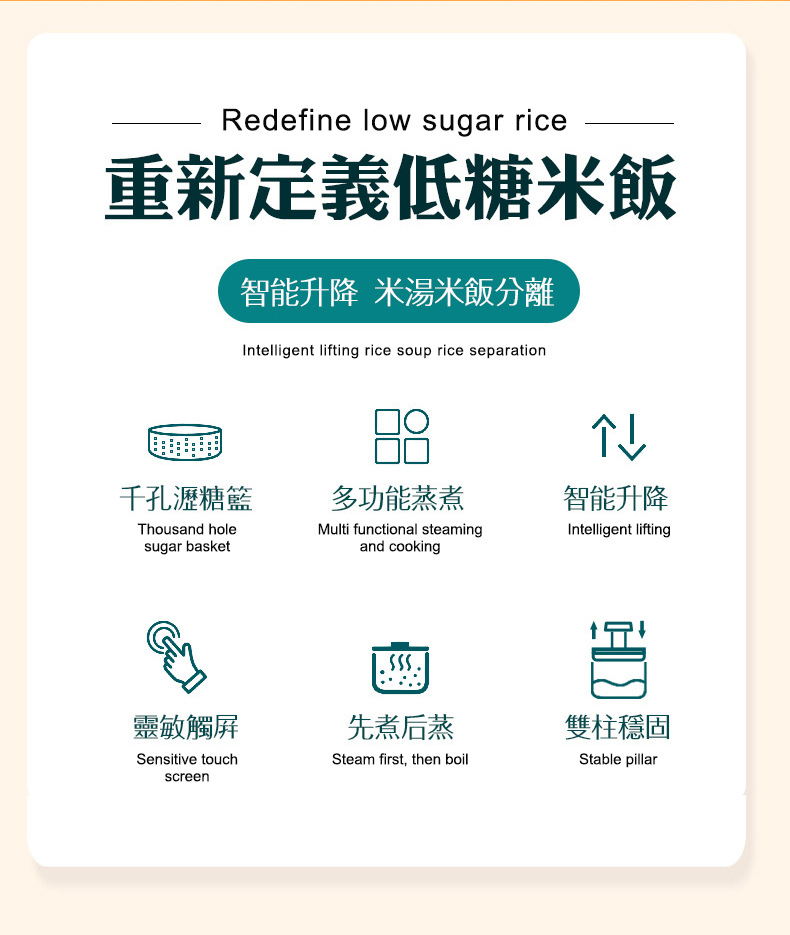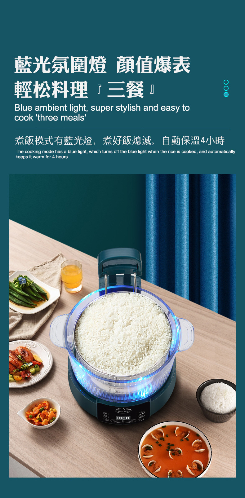 110V 다기능 밥솥 가정용 지능형 리프팅 밥솥 쌀 수프 분리 제어 설탕 김이 나는 쌀 유리 투명 3L