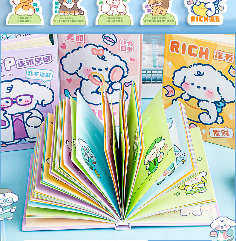 라인 강아지 귀여운 만화 노트북 학생들은 사무실 문구 높은 가치의 노트북 메모장을 배웁니다.