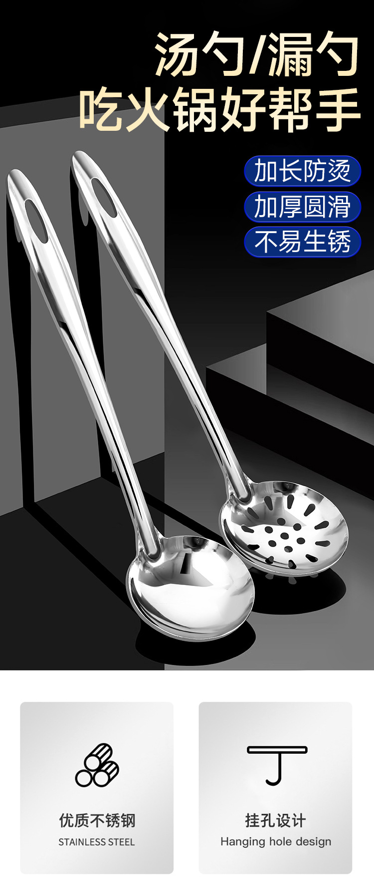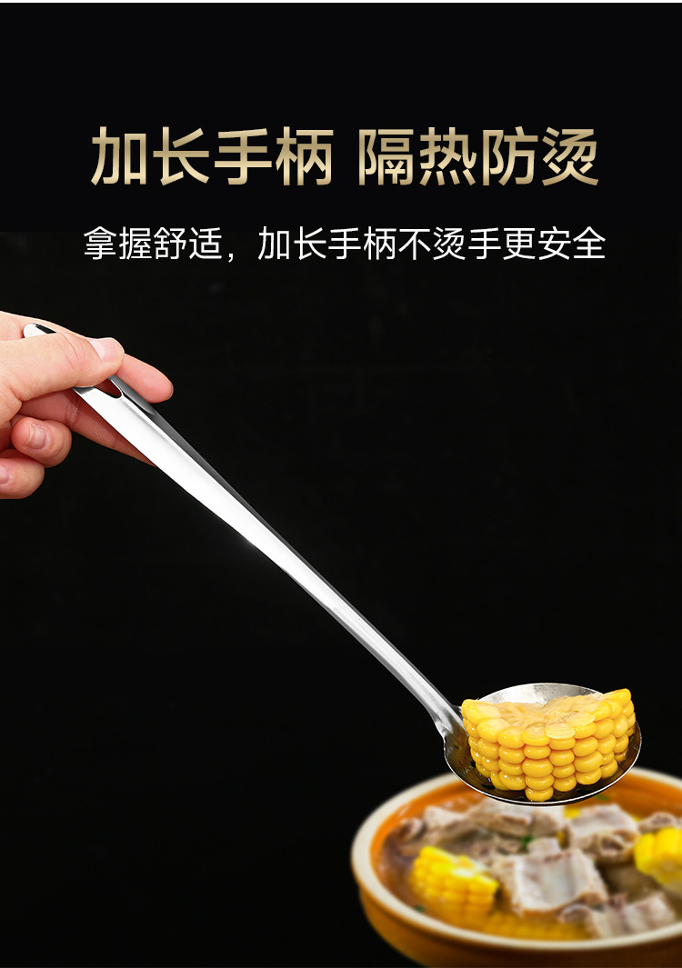 스테인레스 스틸 스푼 가정용 긴 손잡이 수프 숟가락 세트 큰 두꺼운 숟가락