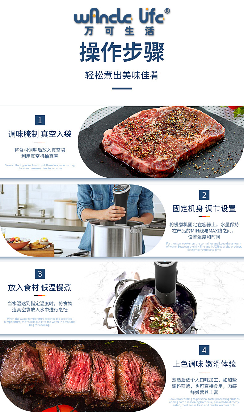 낮은 온도 느린 요리 기계 상업적인 느린 요리 스틱 가구 일정한 온도 스테이크 닭 스테이크 생선 스테이크 진공 요리 일정한 온도 요리 기계