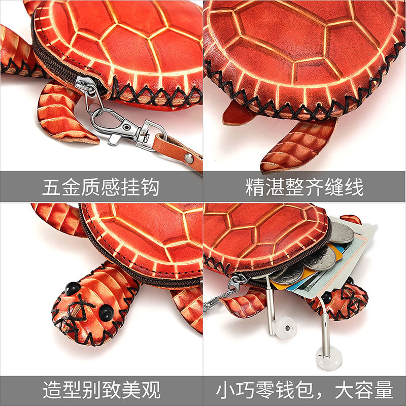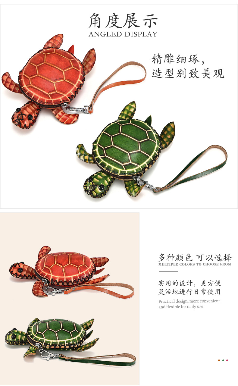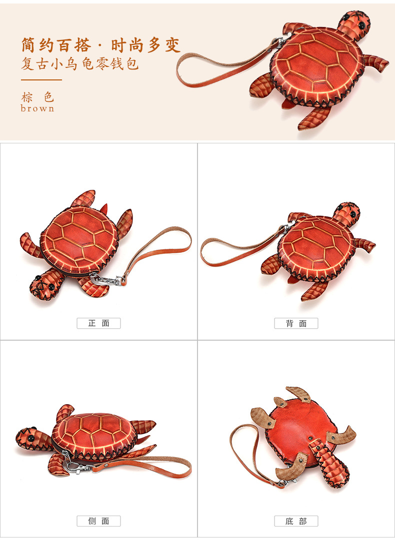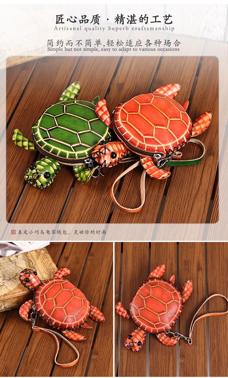 창조적 인 수제 정품 가죽 동물 크로스 백 부품 가방 펜던트 패션 귀여운 손 작은 지갑 작은 거북이 동전 지갑