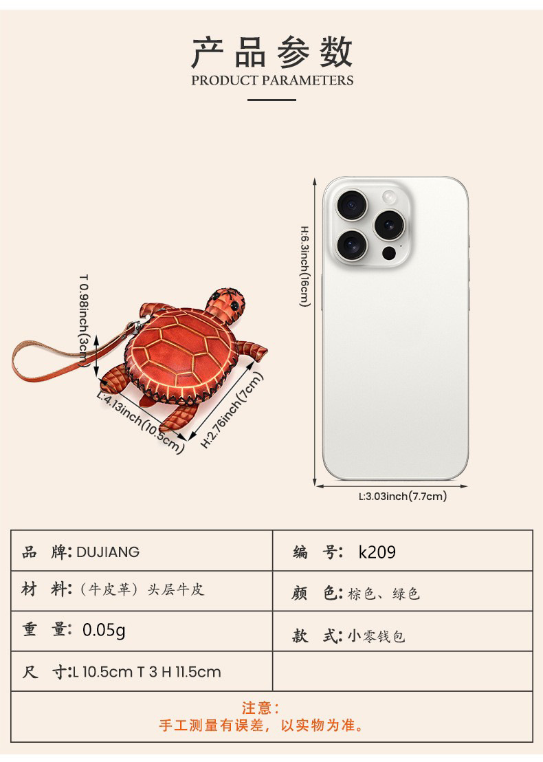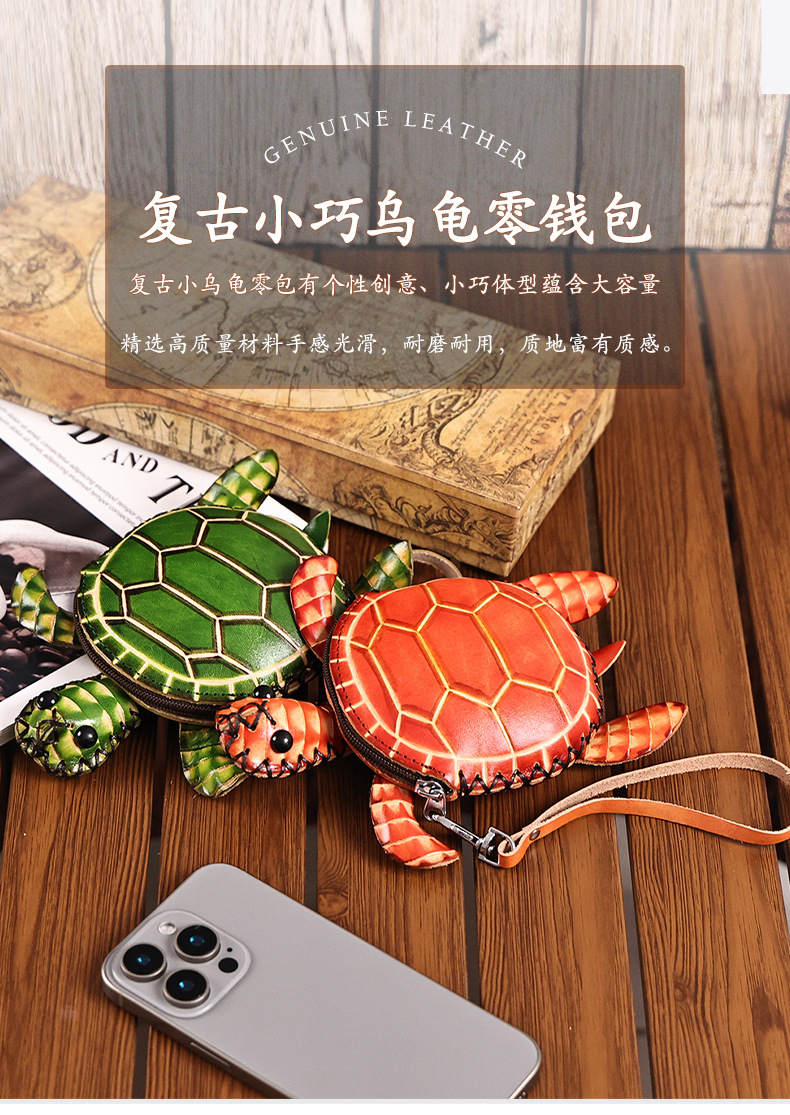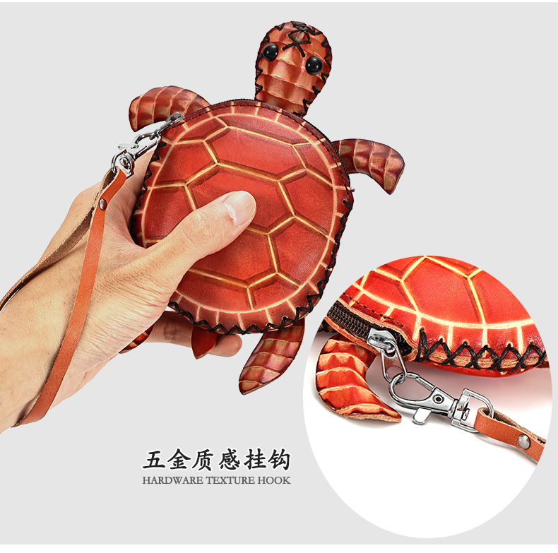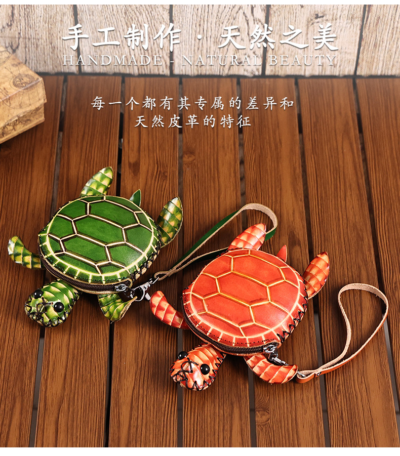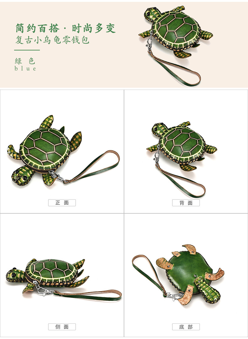 창조적 인 수제 정품 가죽 동물 크로스 백 부품 가방 펜던트 패션 귀여운 손 작은 지갑 작은 거북이 동전 지갑