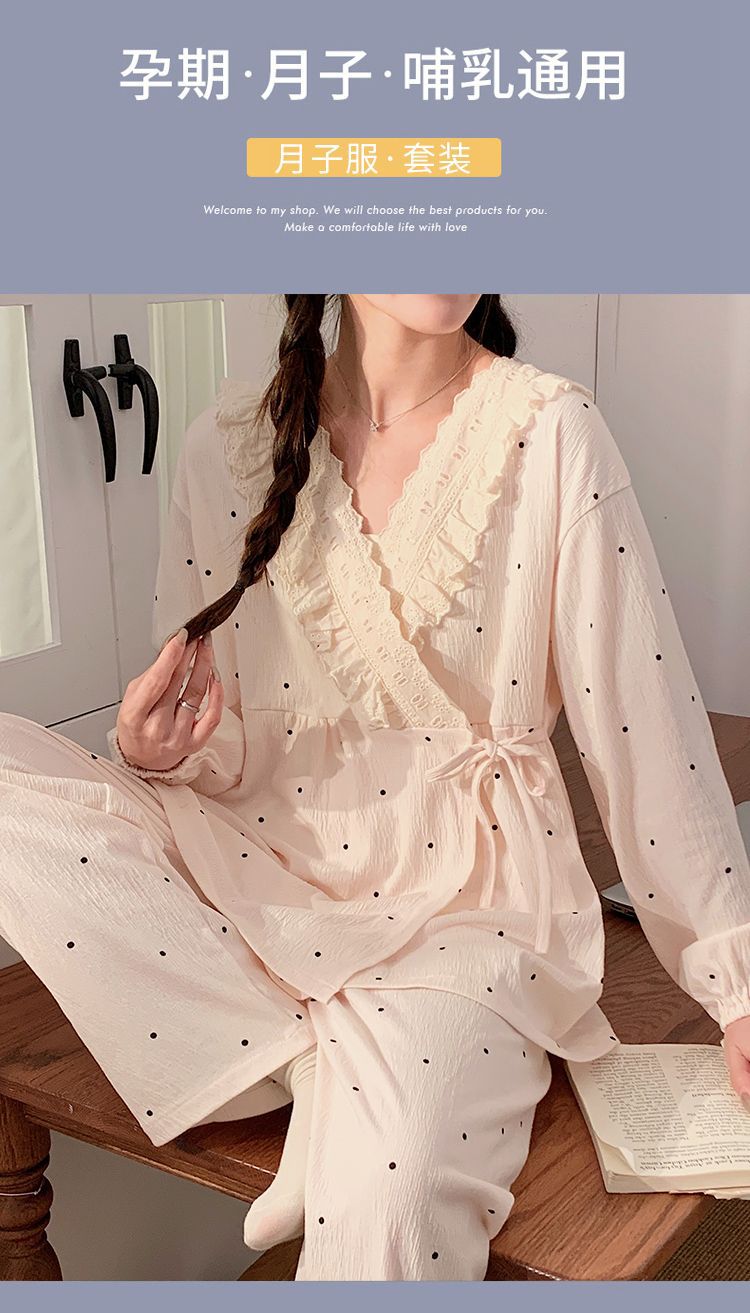 음력 의류 봄과 가을 산후면 플러스 사이즈 간호 임산부 잠옷 모성 여름 얇은 배달 대기 간호 세트