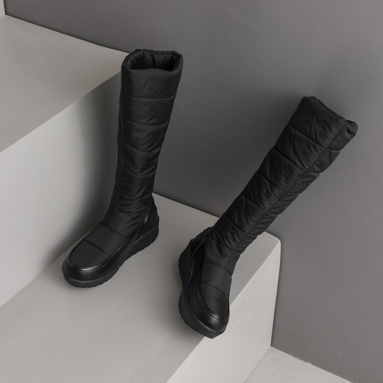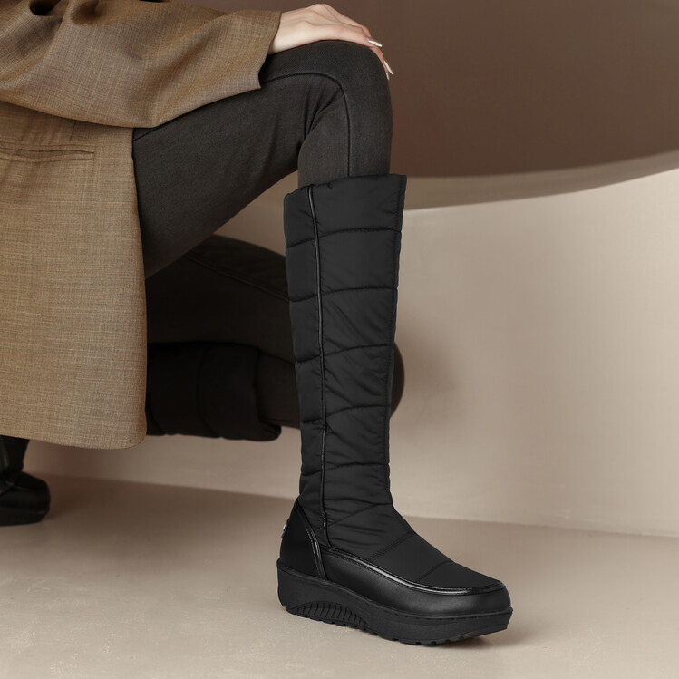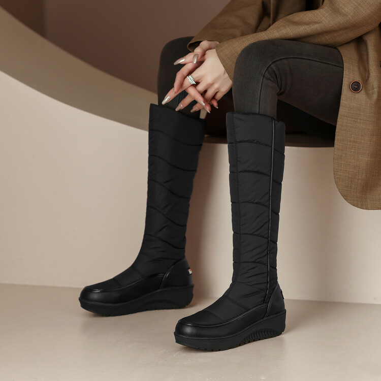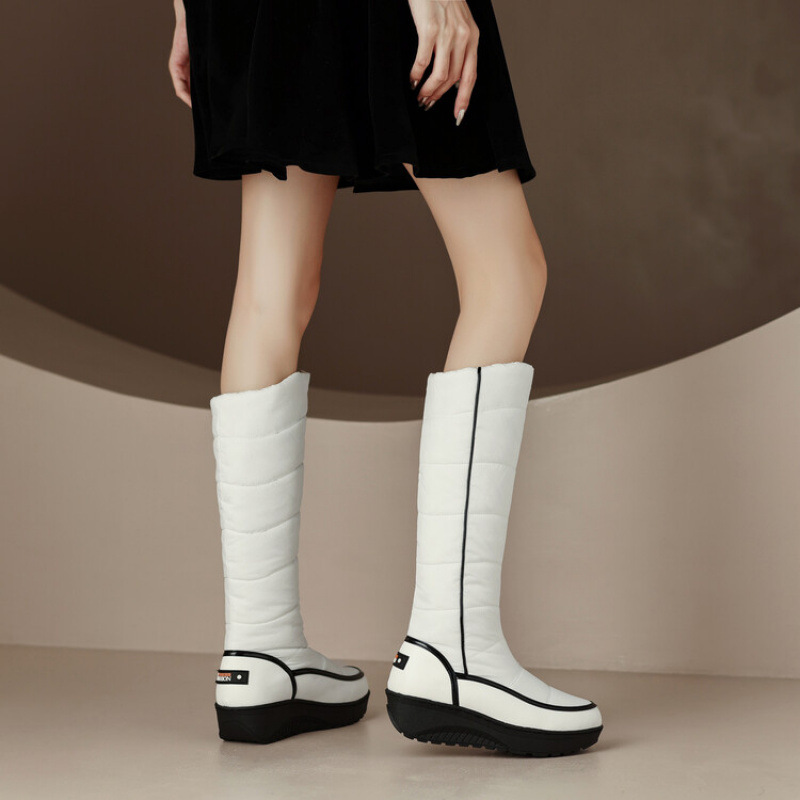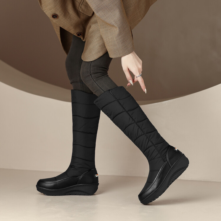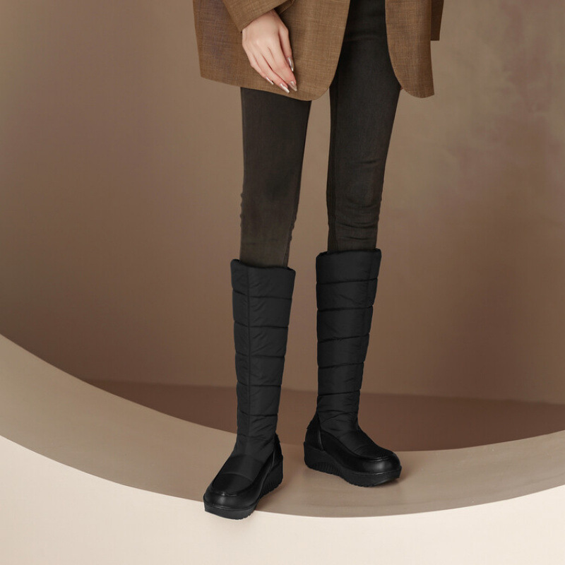 겨울 여성의 눈 부츠 두꺼운 발가락 둥근 두꺼운 바닥 미끄럼 방지 2025 새로운 캐주얼 높은 배럴 스노우 부츠