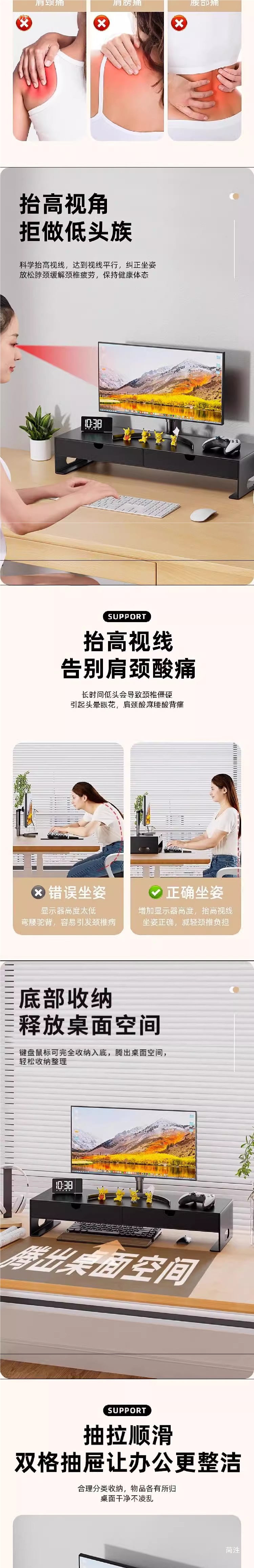 컴퓨터 모니터 랙 사무실 데스크탑 스크린 노트북 베이스 브래킷 스토리지 랙 스토리지 박스