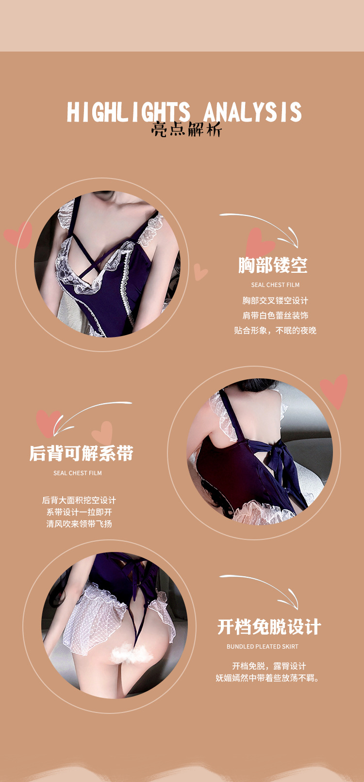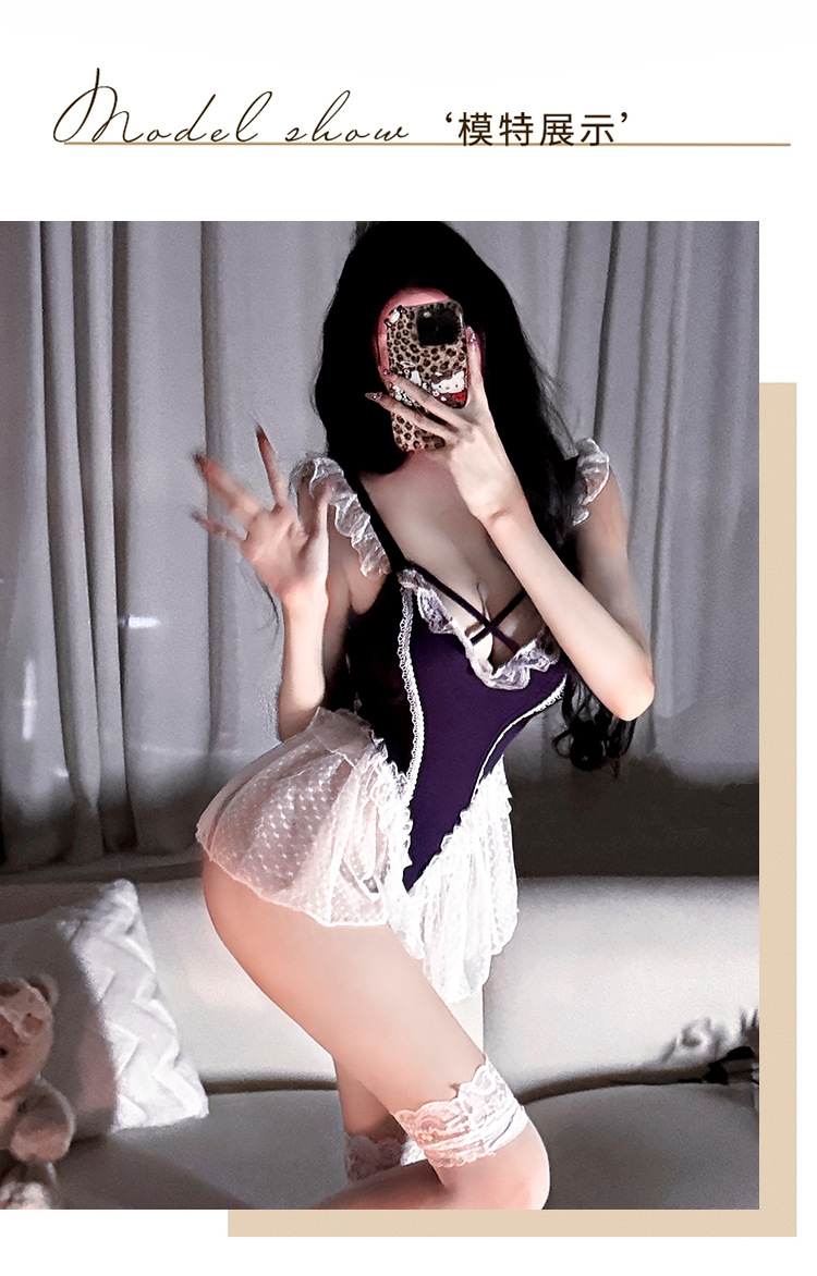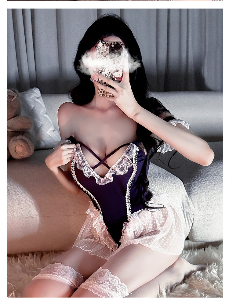 시 메이샤: 섹스 속옷 순수한 욕망 보라색 원피스 섹시한 작은 가슴 유혹 유니폼 여성 잠옷 세트
