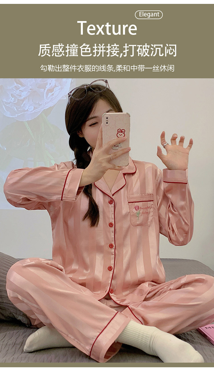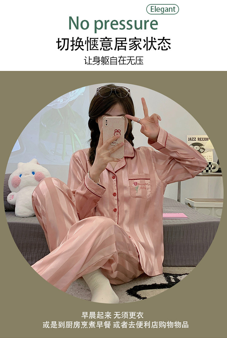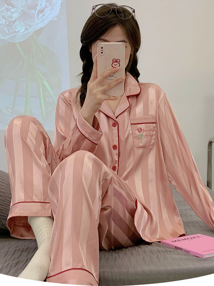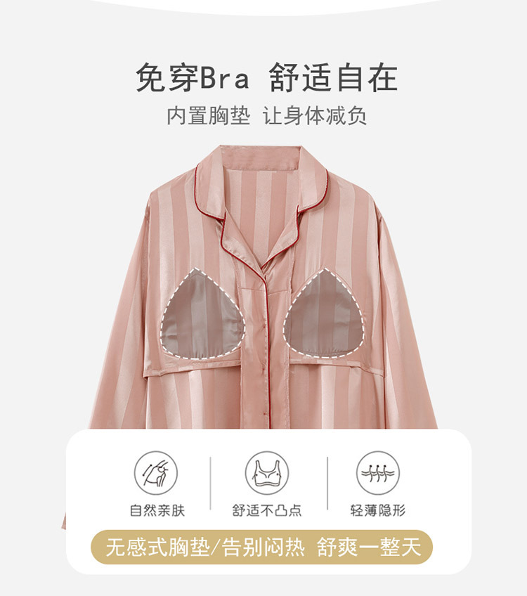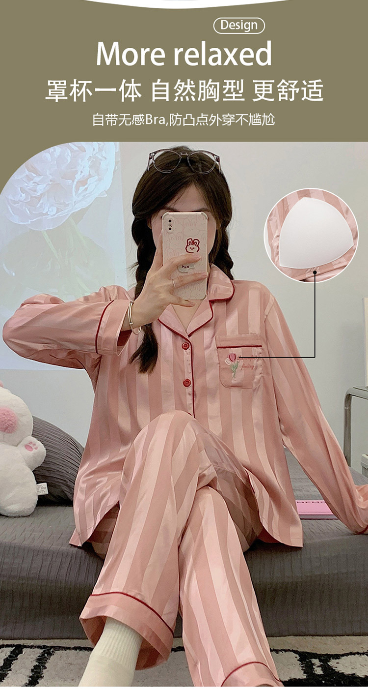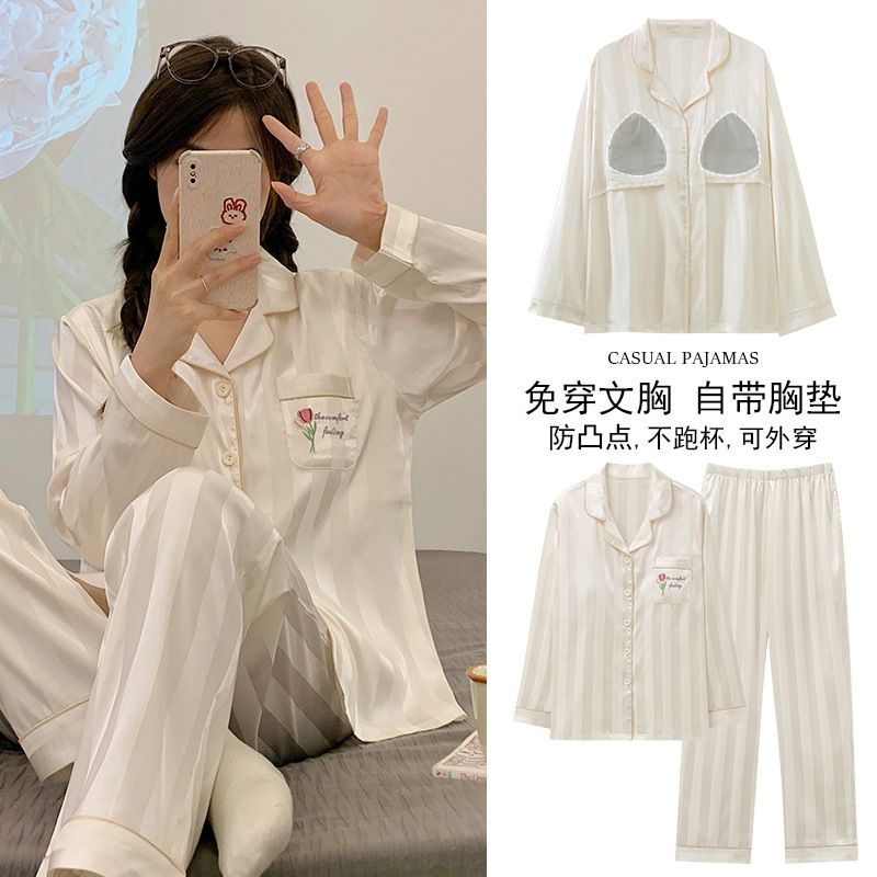 아이스 실크 잠옷 여성의 봄과 가을 긴 소매 2025 가슴 패드와 새로운 하이 엔드 센스 시뮬레이션 실크 여름 홈 옷