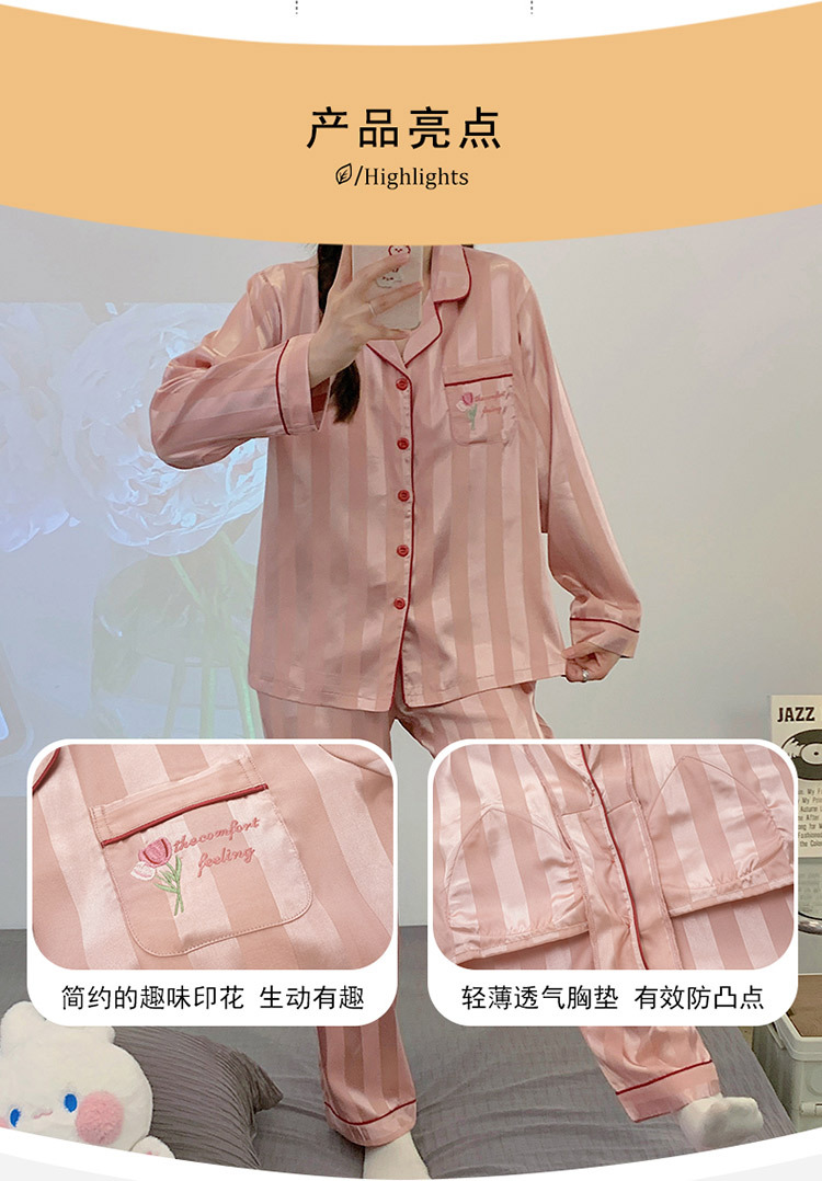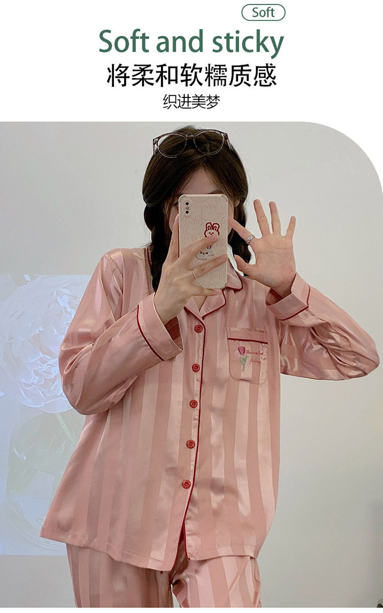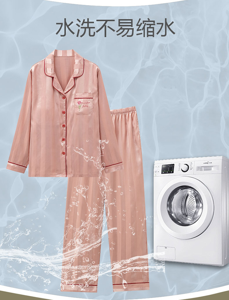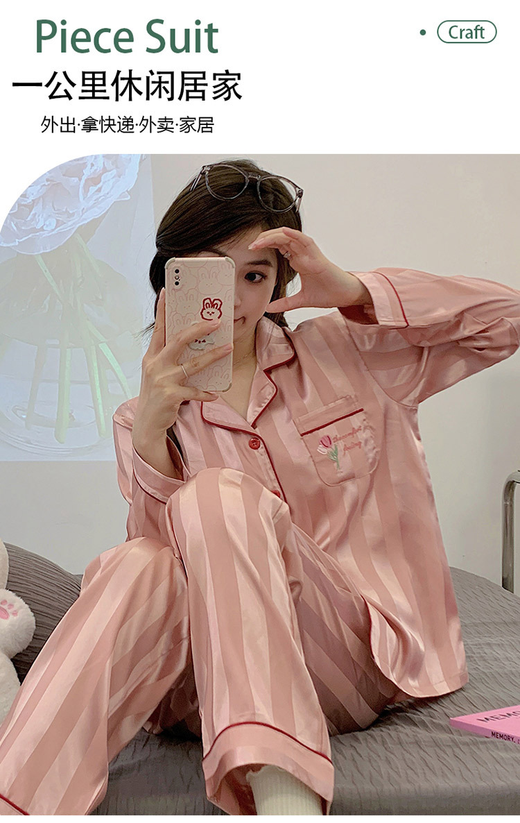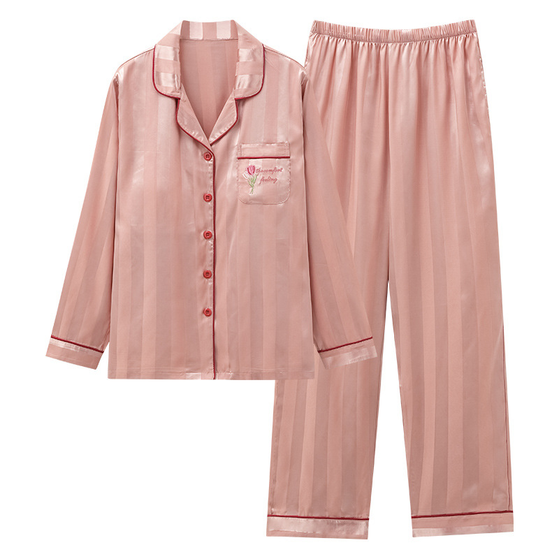 아이스 실크 잠옷 여성의 봄과 가을 긴 소매 2025 가슴 패드와 새로운 하이 엔드 센스 시뮬레이션 실크 여름 홈 옷