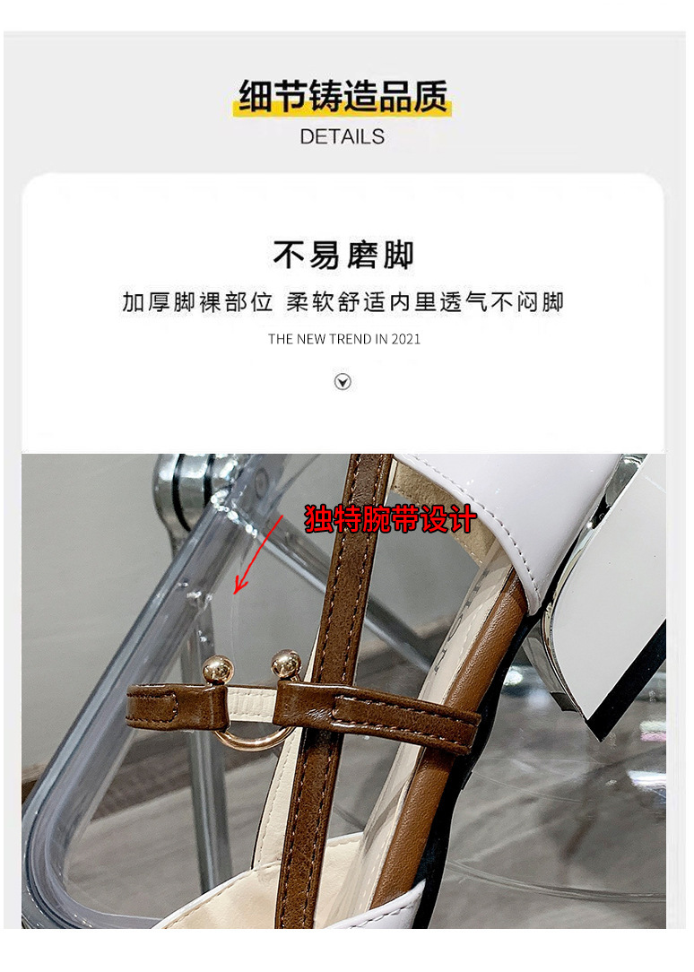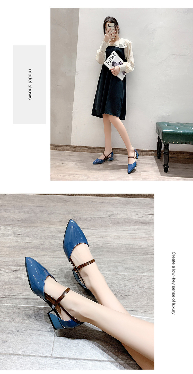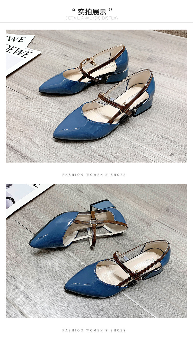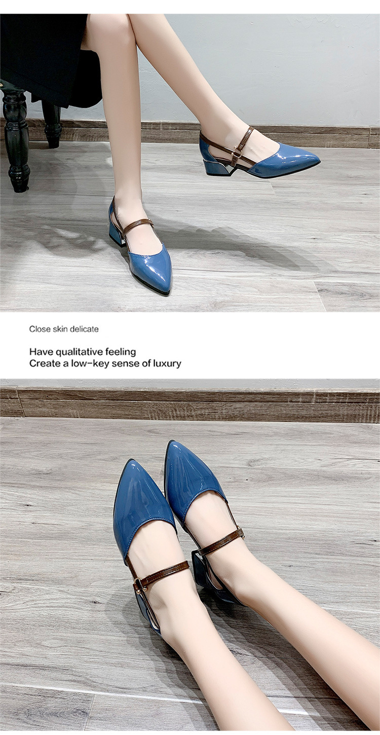 다재다능한 중공 버클 슈즈, 부드러운 가죽 토캡 샌들, 여성 여름 미드힐 한국식 포인티드 토 하이힐 가죽 슈즈
