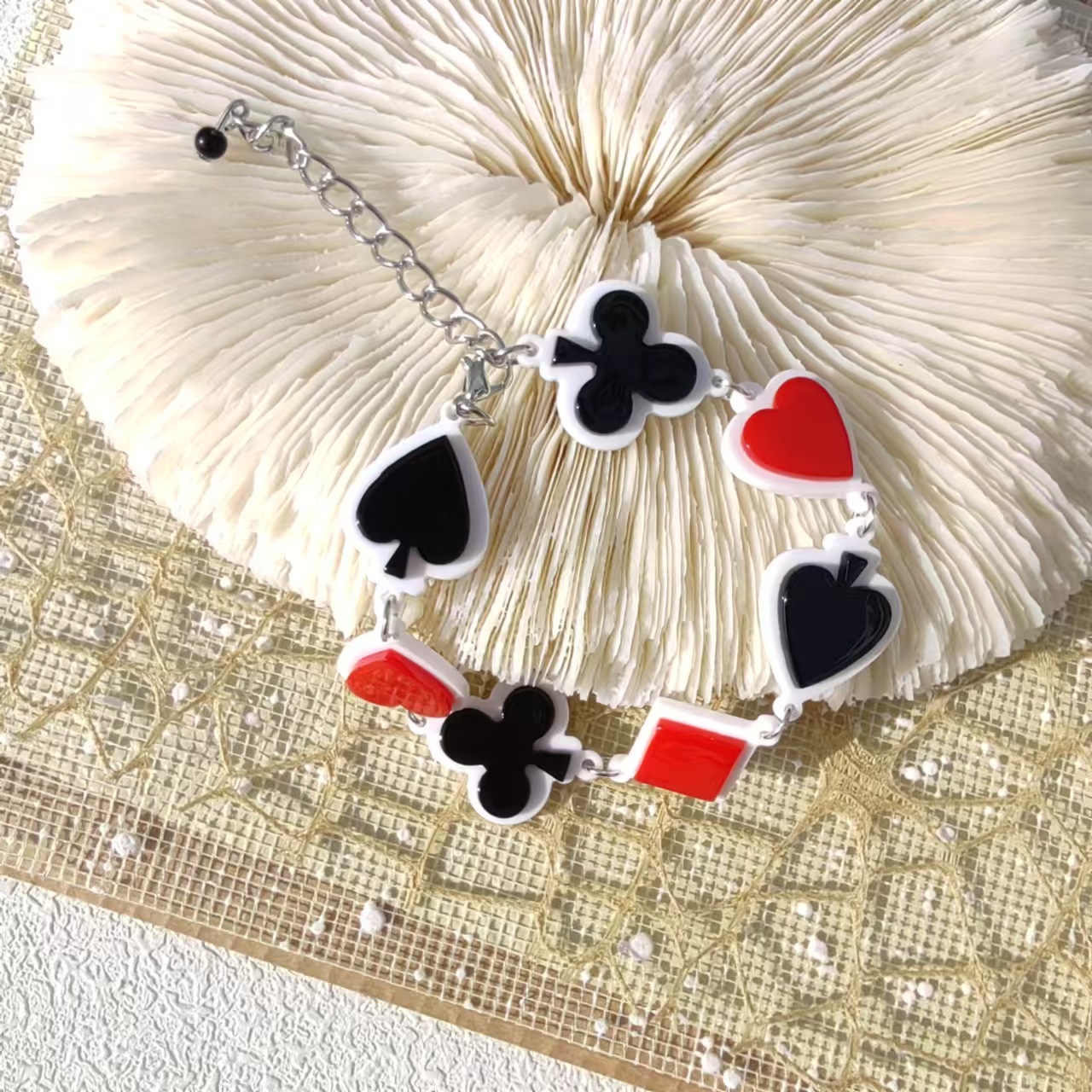 아크릴 플레이 카드 하트 클로버 팔찌 귀여운 복고풍 유럽과 미국의 국경 간 정보 바람 인터넷 연예인 같은 스타일